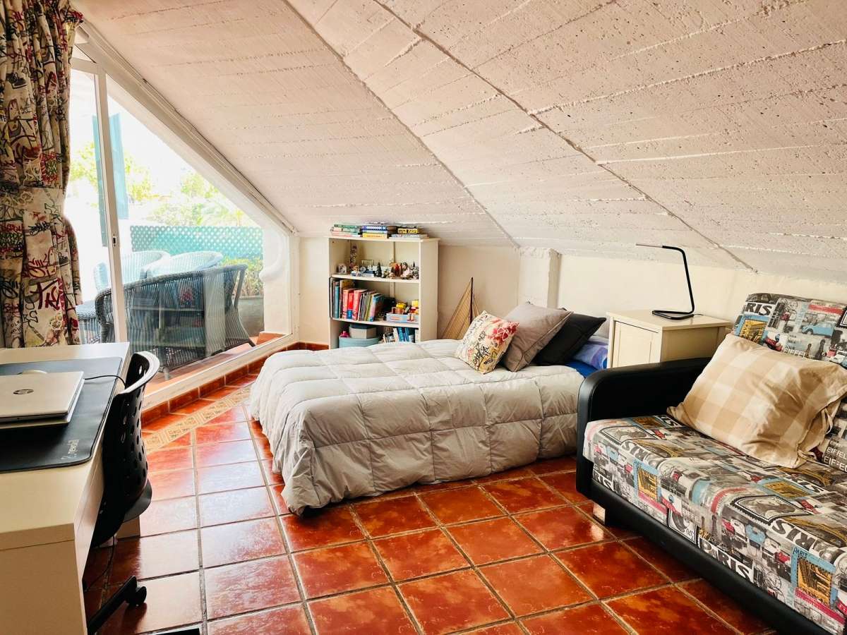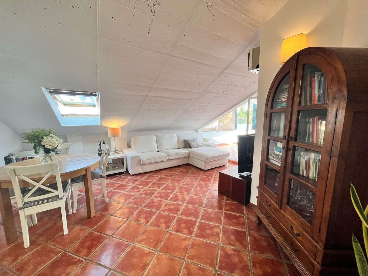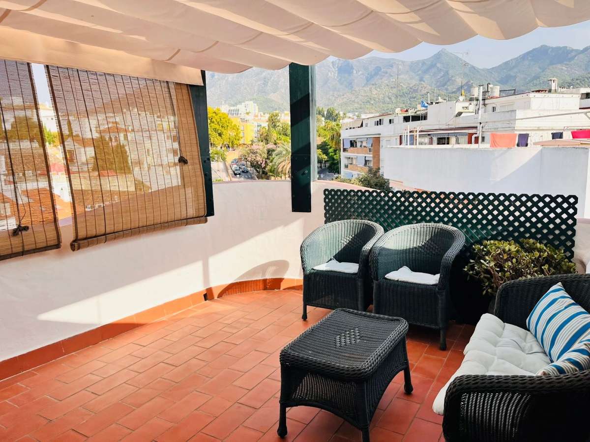 This duplex penthouse consists of two very bright attic bedrooms, a furnished and equipped open-plan kitchen, a full bathroom, a living-dining room with access to the terrace, a covered terrace with a pergola, views of the Old Town and the famous Sierra Blanca (Juanar and La Concha). In addition, as it is a duplex in the upper part of the building, it has a private solarium where you can set up a chill-out area and enjoy 360º panoramic views of the sea, city and mountains. All amenities are within walking distance to make your life easier and more comfortable, such as a pharmacy, supermarkets, restaurants, Ochoa Hospital, etc., so you won't need a vehicle to get around (a real luxury). The building has a lift and a unique location. A unique opportunity. Come and visit!