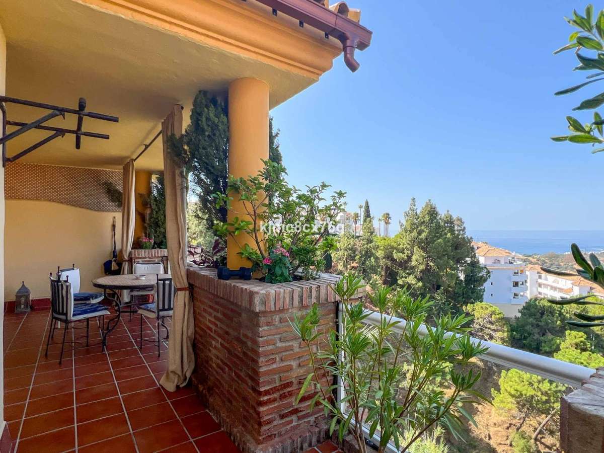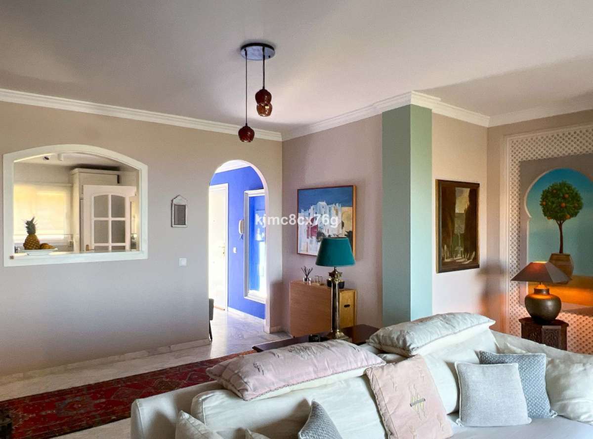 Discover this stunning 2-bedroom penthouse, fully renovated and located in a peaceful Andalusian-Mediterranean style complex in upper Calahonda (Mijas Costa). Facing west, it enjoys all-day natural sunlight and spectacular panoramic views of the sea and mountains from every room.