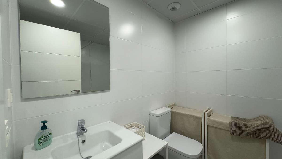 The apartment has a bright open-plan living-dining room, the kitchen is fully equipped with appliances.