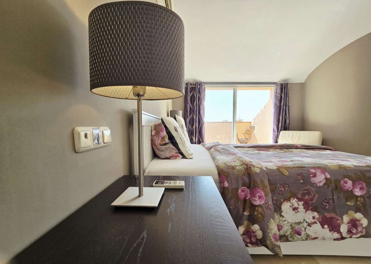 This bright two-storey penthouse is in good condition and comprises a large living and dining room with access to a spacious terrace. The kitchen is located at the rear, as is the second bedroom. A complete family bathroom is also on this level.