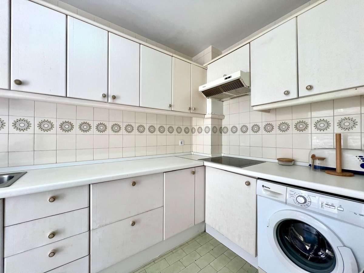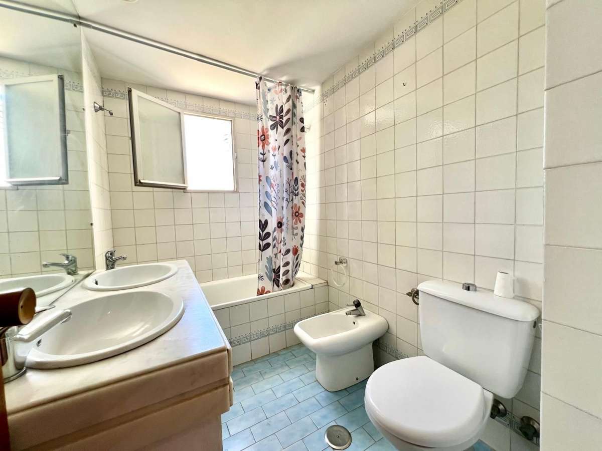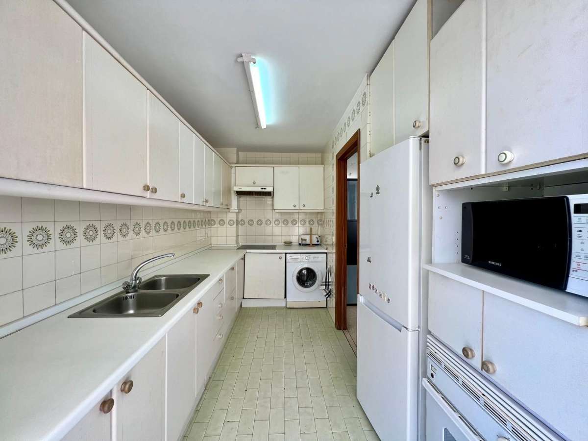 ELVIRIA. LOVELY APARTMENT WITH GREAT POTENTIAL SITUATED ON THE TOP FLOOR IN THE CENTRAL URBANIZATION OF PARQUE ELVIRIA. THE APARTMENT IS 105 m2 INCLUDING TERRACES. THE APARTMENT HAS 3 BEDROOMS AND 2 BATHROOMS. OPEN LIVING ROOM WITH FIREPLACE WHICH LEADS TO AN OPEN SKY TERRACE AND HAS THE POSSIBILITY TO ACCESS TO A SOLARIUM. THE BRIGHT KITCHEN HAS AN EXTENSION TO A COVERED TERRACE. THERE IS A 7M2 STORAGE ROOM ON THE GROUNDFLOOR. NO LIFT.
