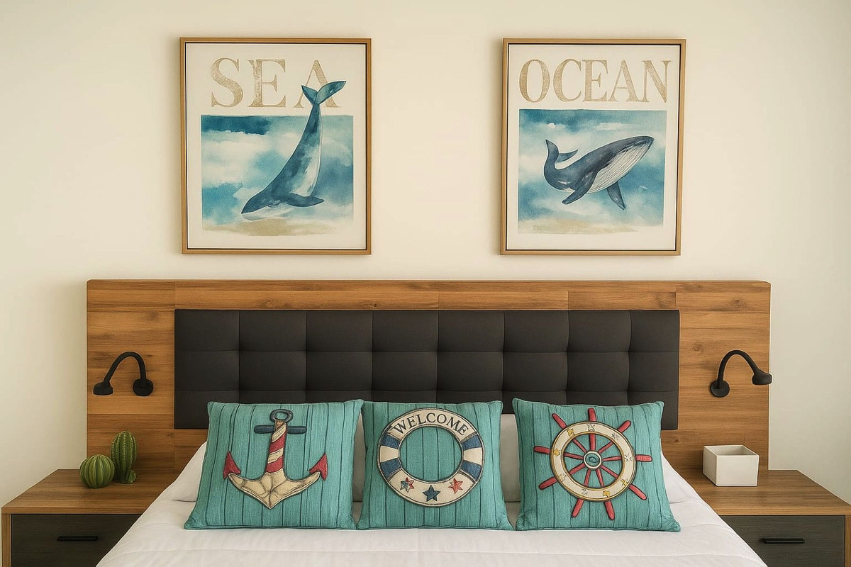 Perched on the third floor with convenient lift access and a desirable south-west orientation, this bright and airy penthouse floods with natural light and gentle sea breezes. The layout features two spacious double bedrooms, each with direct terrace access, built-in wardrobes, and en-suite potential; two modern bathrooms; a fully equipped kitchen with high-quality appliances; and a generous living-dining area that seamlessly opens onto private terraces—perfect for al fresco dining, relaxation, or entertaining amid open views of manicured gardens and the coastal horizon. Delivered fully furnished with tasteful, premium décor and materials, it's ready for immediate occupancy. Additional highlights include air conditioning throughout, a dedicated storage room, and an included garage space.