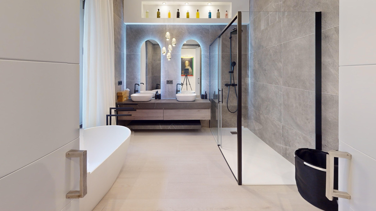 This fully furnished residence features top-of-the-line design elements and includes the option to purchase a nearby parking space for €29,500. Enjoy the comfort of underfloor heating and air conditioning in every room, each with individual temperature controls.