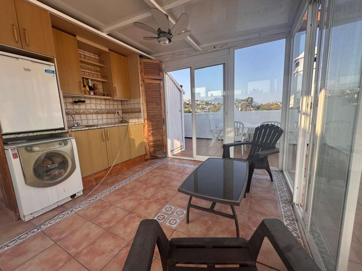 Discover this spectacular frontline golf penthouse. With a completely renovated and tastefully decorated design, this home features two spacious bedrooms and two full bathrooms, perfect for enjoying comfort and style. The kitchen is open to the living room, offering cozy and bright spaces. It also has a fireplace. The living room opens onto a charming terrace where you can relax while enjoying the stunning views of the golf course.