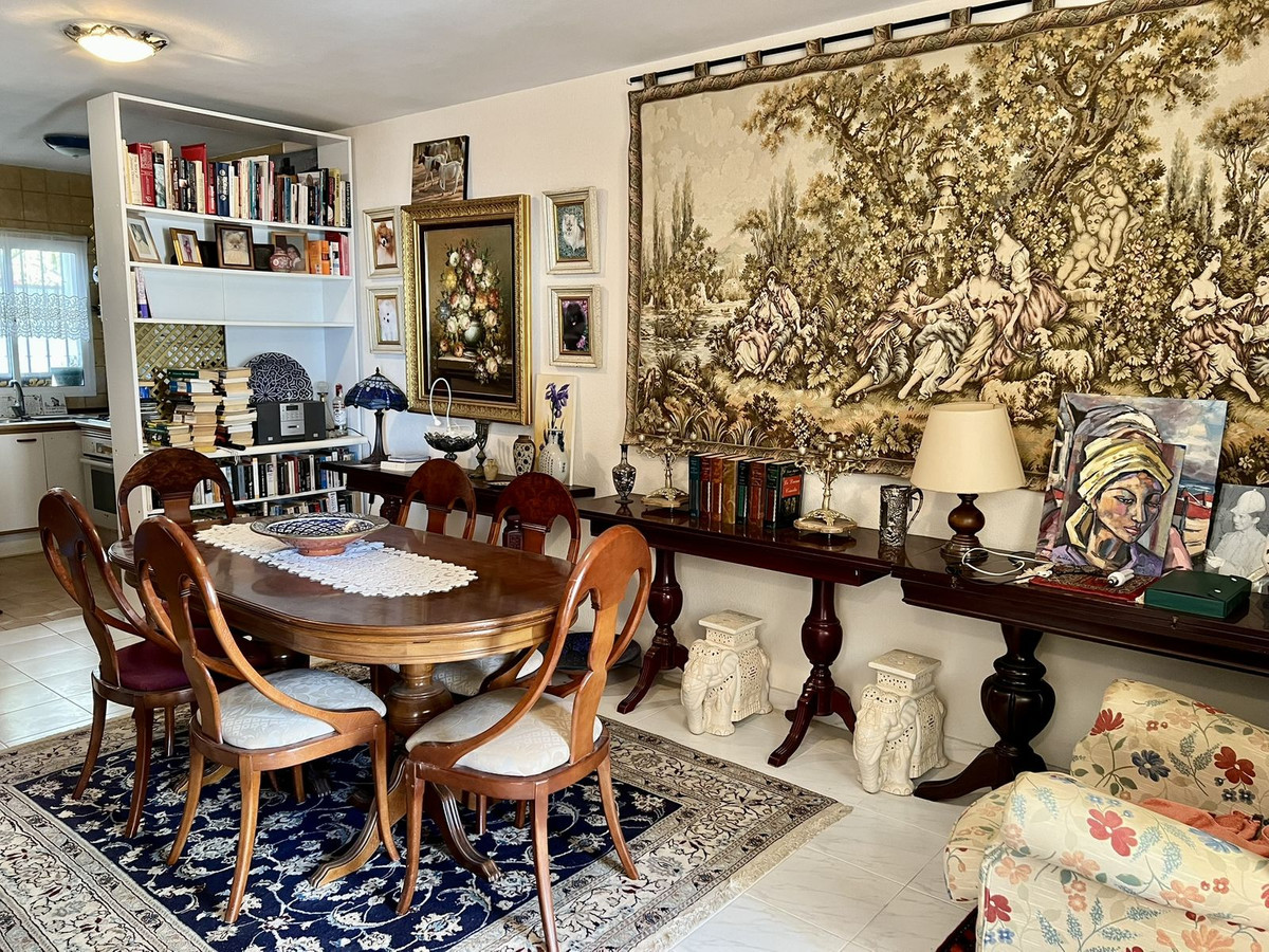 LOVELY TWO-BEDROOM APARTMENT in the heart of Mijas Pueblo boasting AMAZING SEA VIEWS! Located in a quiet residential gated community on the west side of town. Only a short stroll from Bar el Niño and parking area. Situated on a second floor (top floor) this apartment of approx 60 m2 has a living/dining room, fitted kitchen, 2 bedrooms and 1 bathroom. Enclosed terrace is now a sitting room. A/C. Beautiful views to Mediterranean sea, communal swimming pool and mature gardens. Nice holiday flat. In need of renovations and TLC. VIEWINGS ARE RECOMMENDED!