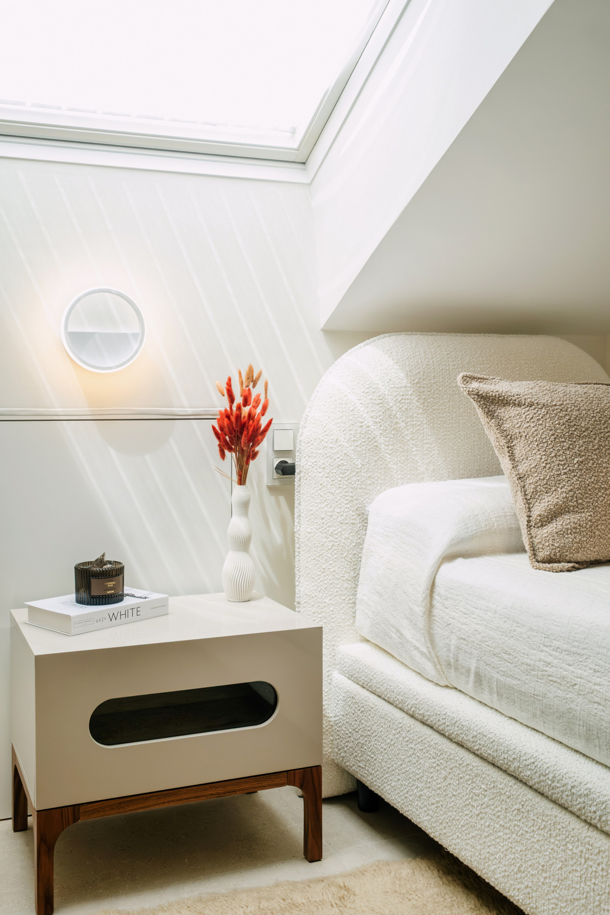 The refurbishment, completed in 2025, combines natural materials, walnut wood details, and warm lighting to create a calm, modern interior. The main floor features an open-plan living and dining space with a well-equipped kitchen, including Siemens appliances, a stone island, double fridge, integrated wine cooler, and a separate butler’s pantry.