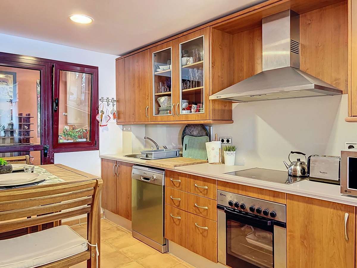 This beautiful penthouse offers 2 bedrooms and 2 bathrooms, with panoramic sea views from the living room, master bedroom, terrace, solarium, and even from the kitchen. The kitchen is fully equipped and features a serving hatch that connects to the living room, allowing you to cook while enjoying the stunning sea views and spending time with your family.