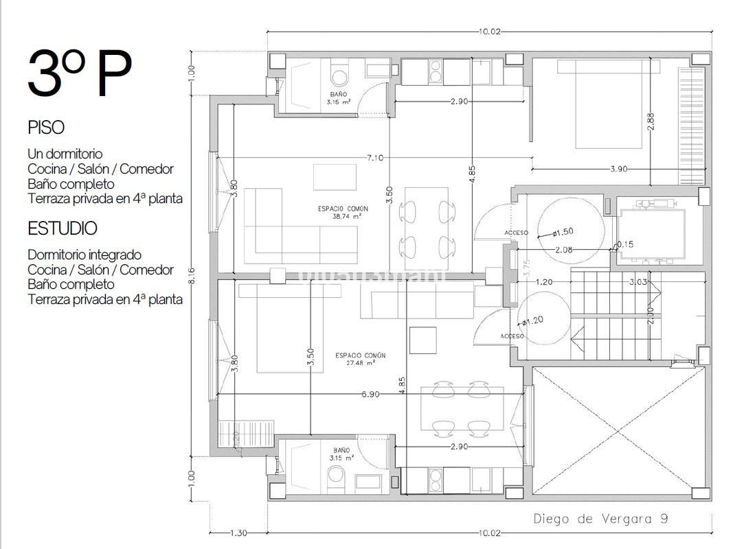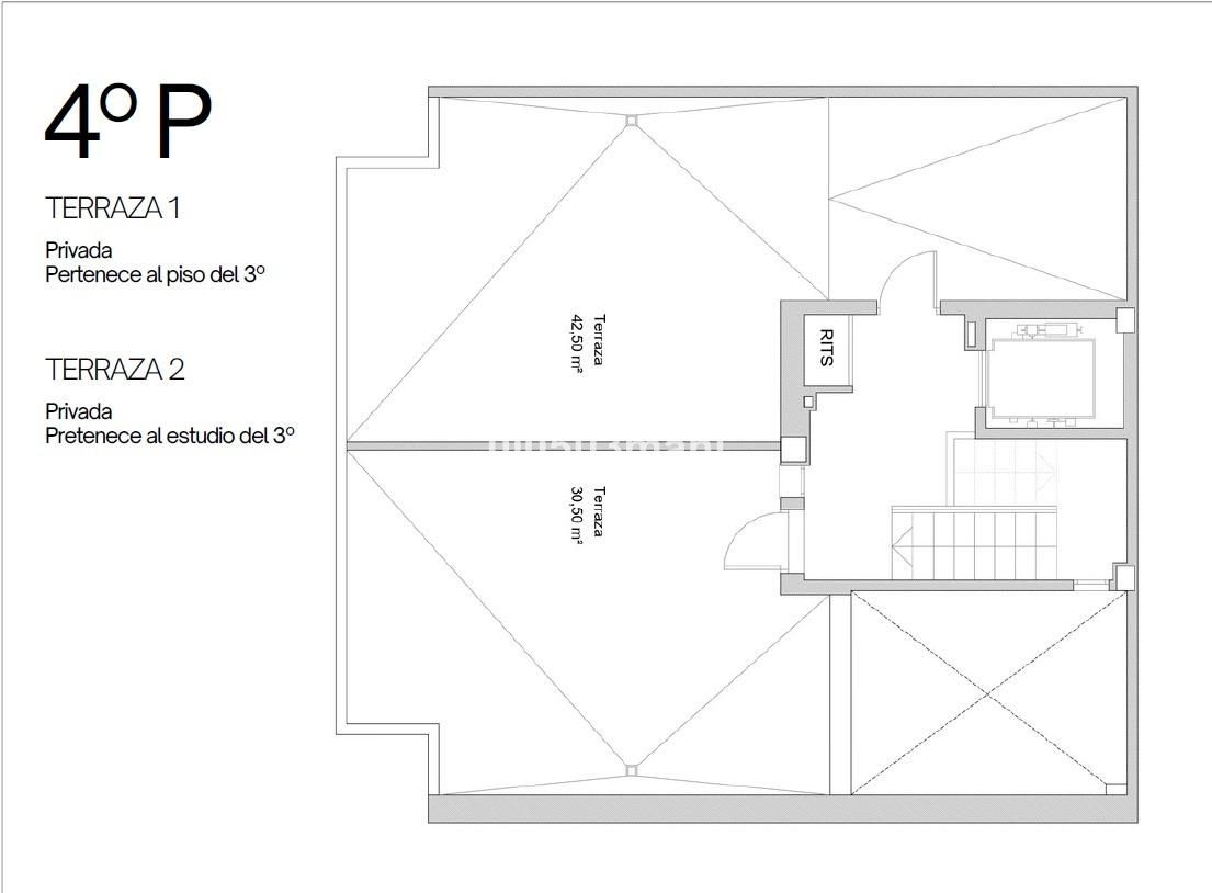 5. A 34.5 m² studio with a 30.5 m² private terrace, 3rd floor A.