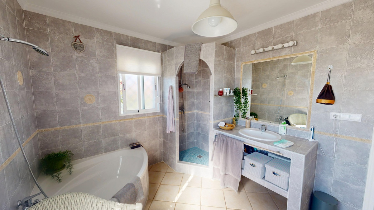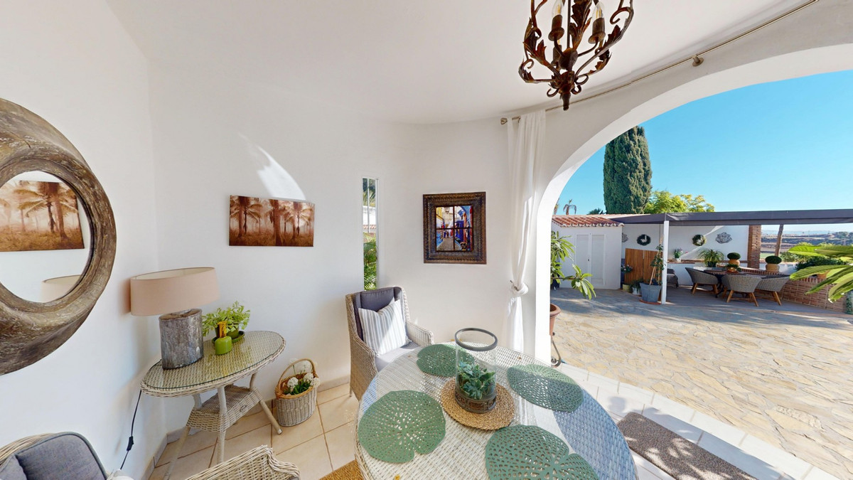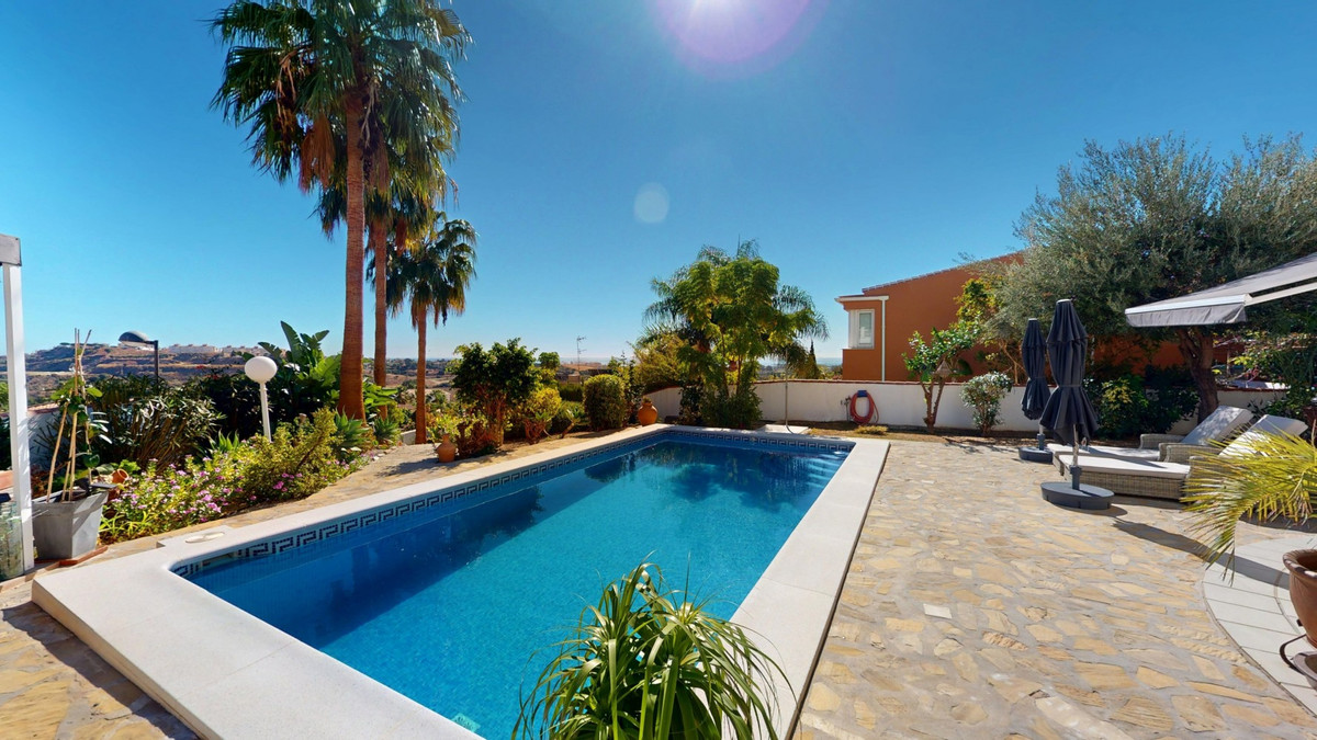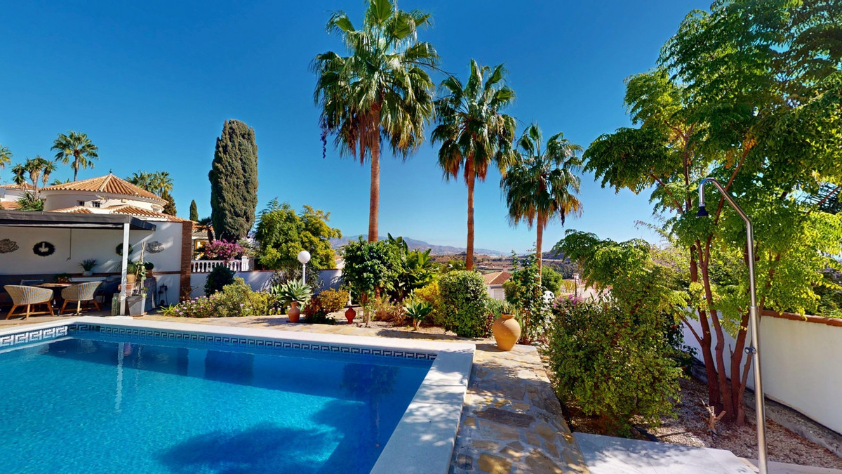 Step into a world where luxury meets tranquility in this beautiful detached villa, located in the quiet residential area of El Capitán, near Torre del Mar and Almayate on the east coast of Málaga. The location is ideal for those seeking peace and privacy while staying close to all amenities. Within just a few minutes you can reach the beaches of Almayate and Torre del Mar, where youll find charming restaurants, shops, and lively seafront promenades. Málaga city and the airport are only about 35 minutes away by car. Set on a private 811 m2 plot, the villa offers 310 m2 of elegant living space, surrounded by a low-maintenance garden enclosed by a wall for complete privacy and security. A private gate gives access for vehicles, and the outdoor area features a sparkling swimming pool, a spacious covered terrace for relaxing in the shade, and a charming dome-shaped seating area perfect for enjoying a drink or a good book. Inside, the home impresses with generous spaces and natural light. The entrance hall leads to a double garage with additional storage. On the ground floor, youll find a large living room with an adjoining sitting area and wide glass doors that open to the pool and garden, as well as a bathroom and a bedroom ideal for guests. Upstairs, the heart of the home unfolds: a bright open-concept space combining the kitchen, dining, and living areas. Sunlight streams through large windows, creating a warm and inviting atmosphere for both relaxed family time and elegant entertaining. The fully equipped kitchen features stylish wooden cabinetry, granite countertops, and garden views. From the living room, you can step onto a large balcony with stunning views of the Mediterranean Sea. This floor also includes two bedrooms, a spacious bathroom, and a separate toilet. A terrace facing the street can also be accessed from this level or via an external staircase, offering extra outdoor space for gatherings or quiet evenings. At the top, a roof terrace crowns the villa, offering panoramic views of the sea, the mountains, and the surrounding countryside a perfect spot to enjoy sunsets and the serene Andalusian evenings. This villa combines elegance, comfort, and Mediterranean charm a true retreat where every day feels like a holiday. We would be delighted to present this dream property to you soon, either in person or through a virtual viewing. Because this world is unique just like our Axarquía. In Andalusia. On the Costa del Sol. Here, on the sunny side of life.