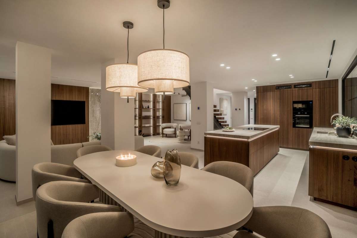 This five-bedroom, four-and-a-half-bathroom semi-detached residence is set directly on the frontline of Aloha Golf Course in Nueva Andalucía, one of Marbella’s most desirable residential districts. The property combines well-designed interiors with inviting outdoor areas, creating a balanced environment for relaxation and entertaining.