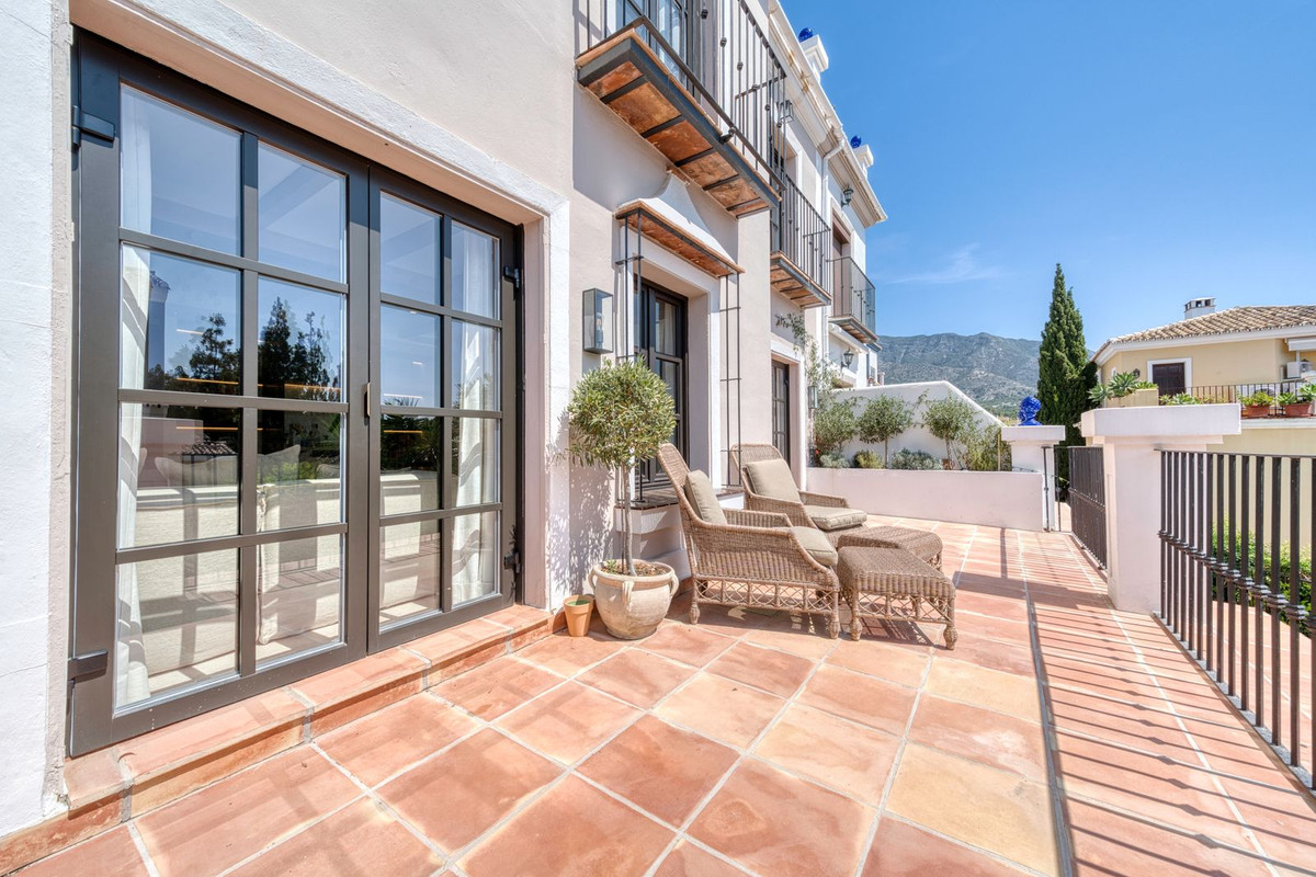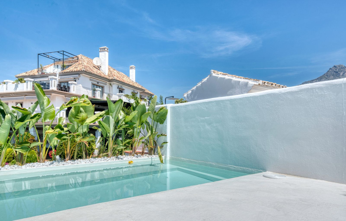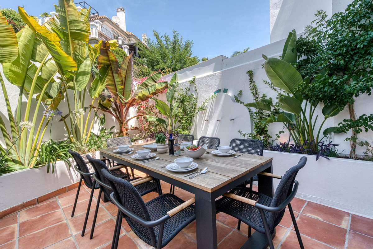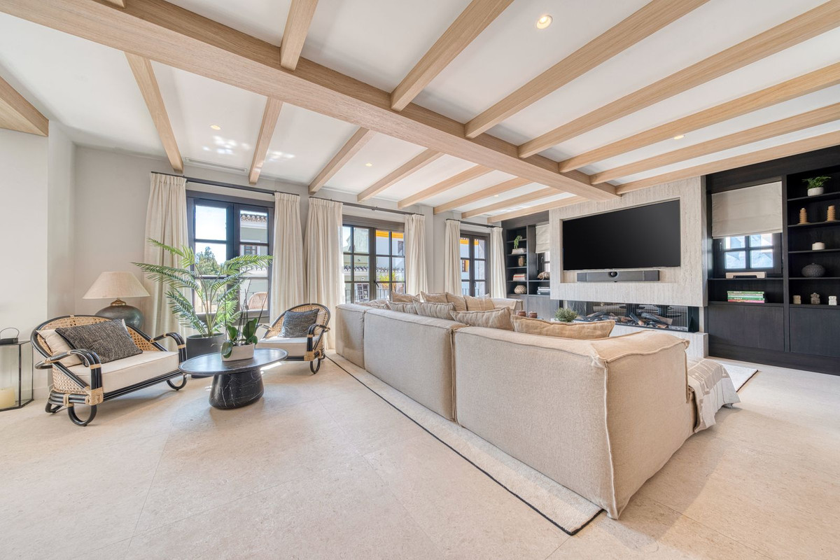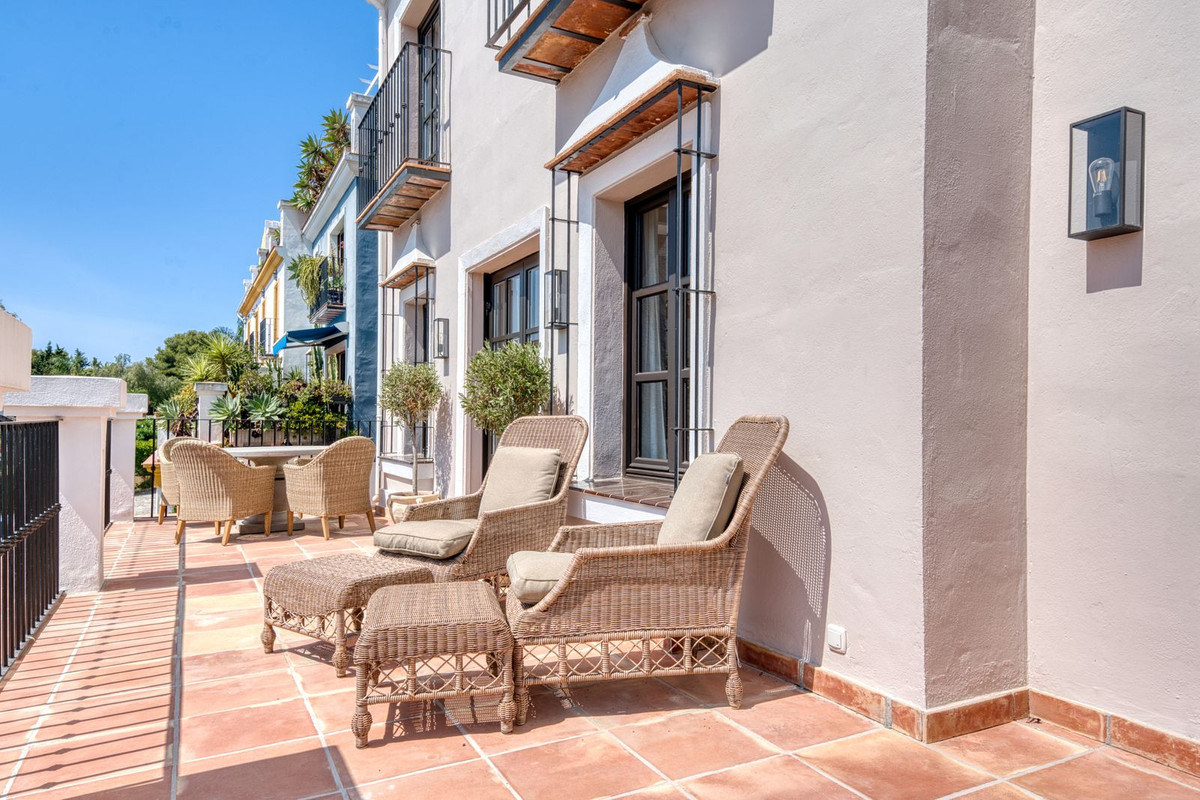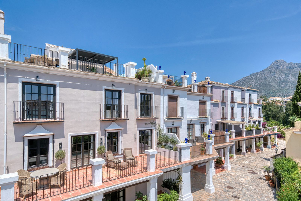 Set within an exclusive gated community on Marbella's Golden Mile, this exquisite end of terrace townhouse/villa captures the essence of classic Andalusian architecture with a luxurious contemporary edge. Located in the heart of Marbella’s prestigious Golden Mile, it offers total privacy, timeless design, and immediate access to the coast’s most iconic beach clubs and fine dining. The private community gated and secure, low-density community of just 24 homes, surrounded by Mediterranean gardens, cascading fountains, and a sculpted swimming pool. With 24-hour security and on-site maintenance, it offers the peace of a private retreat just moments from the beach and the Paseo Marítimo (1km, 16 minutes walk).