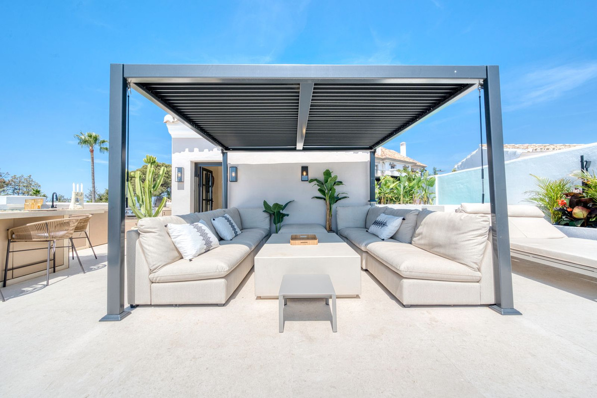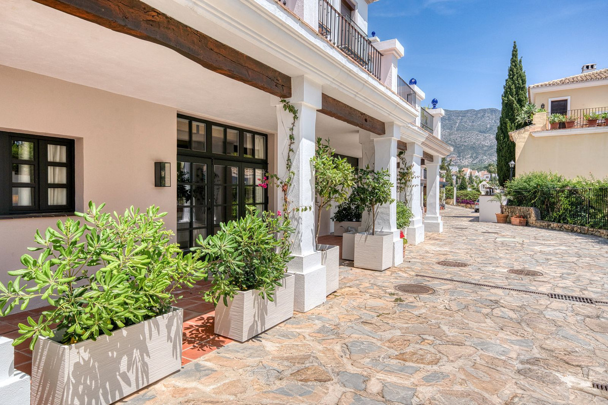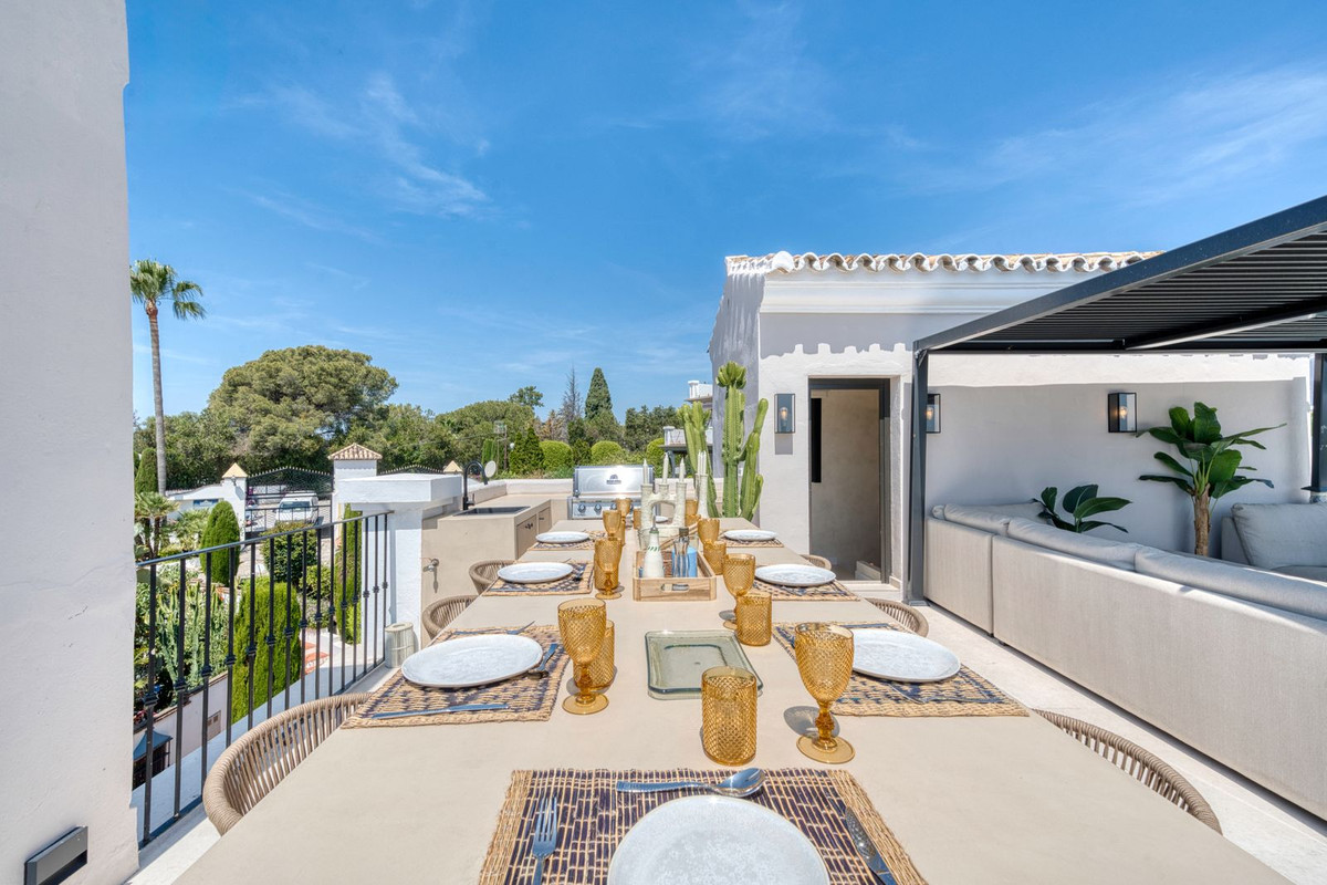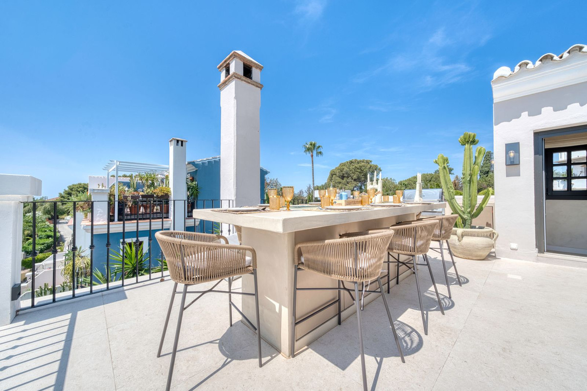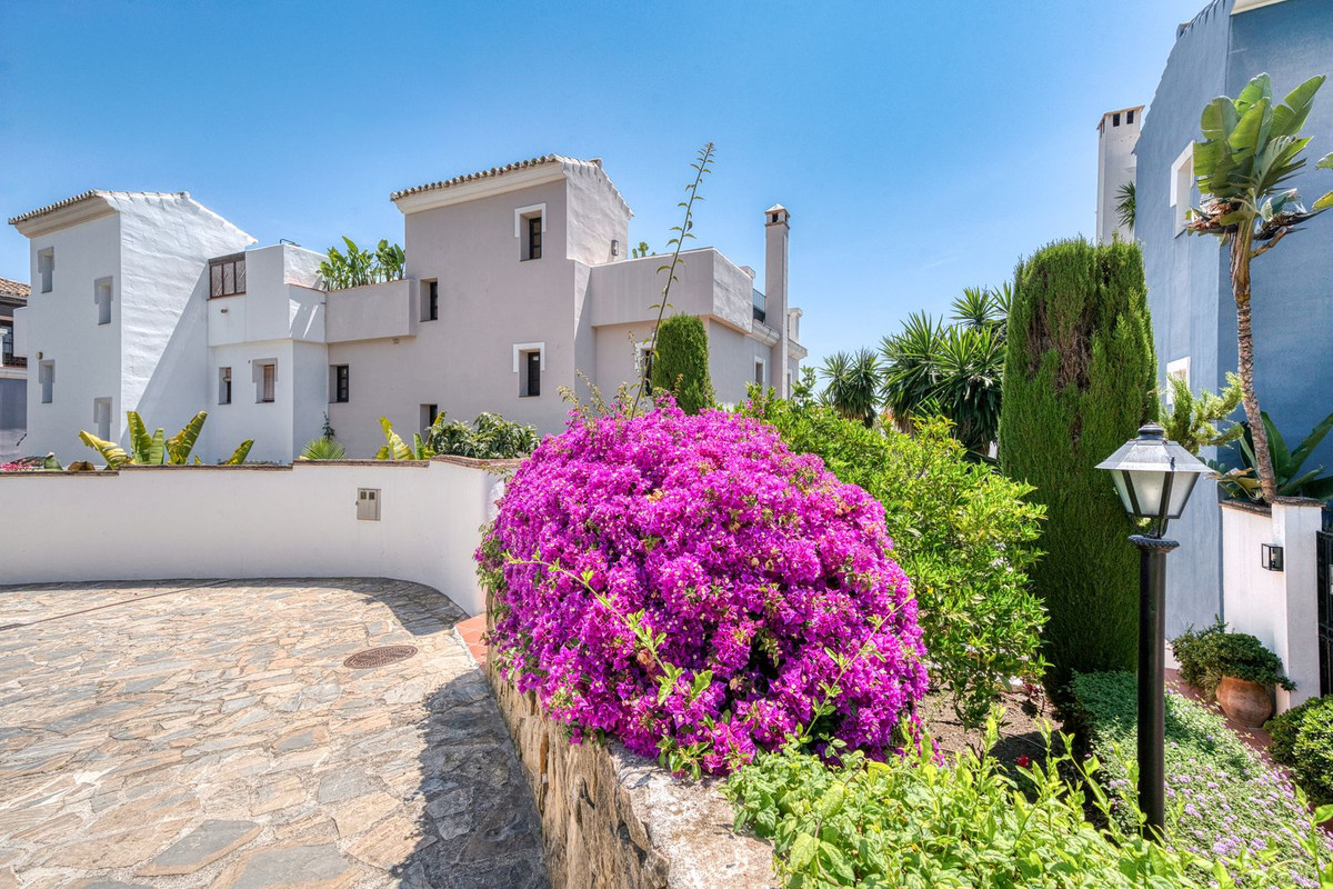 Set within an exclusive gated community on Marbella's Golden Mile, this exquisite end of terrace townhouse/villa captures the essence of classic Andalusian architecture with a luxurious contemporary edge. Located in the heart of Marbella’s prestigious Golden Mile, it offers total privacy, timeless design, and immediate access to the coast’s most iconic beach clubs and fine dining. The private community gated and secure, low-density community of just 24 homes, surrounded by Mediterranean gardens, cascading fountains, and a sculpted swimming pool. With 24-hour security and on-site maintenance, it offers the peace of a private retreat just moments from the beach and the Paseo Marítimo (1km, 16 minutes walk).