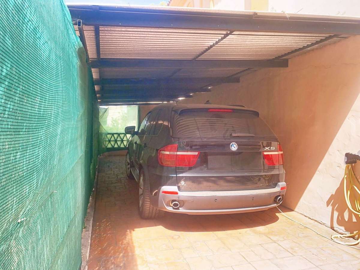 The private plot features two patios. The entrance patio includes a porch and a covered carport for two vehicles, providing access to the house. On the main floor, the property offers a spacious living-dining room with a fireplace and marble floors, creating an elegant and welcoming atmosphere. The kitchen, semi-open in style and fully equipped for daily use, connects both to the dining area and the entrance patio. This floor also includes a guest toilet for added convenience. From the living-dining room, there is access to a 40 m² covered terrace, perfect for enjoying the Mediterranean climate. Downstairs, the terrace connects to the front patio—a space with abundant vegetation and shade that, in addition to having side access from the street and offering an independent entrance to the guest apartment, features a gate with direct access to the communal swimming pool.