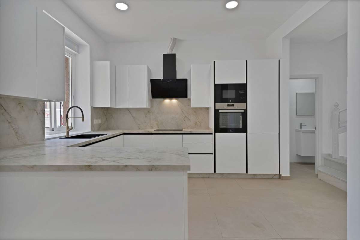 Discover this magnificent, fully renovated townhouse located on Salamanca's market square in the heart of Malaga. With a floor area of 1,700 sq ft, this property combines the old-world charm of a 1940s building with unparalleled modern comfort. Ideal for large families or those who love to entertain, it has six spacious bedrooms, including three elegant suites. Each bedroom is equipped with built-in wardrobes and closets, offering optimal storage space.