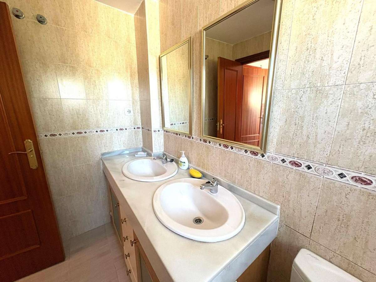 On the first floor, there are three bedrooms, all with fitted wardrobes and air conditioning. The master bedroom has an en-suite bathroom and the option to extend the space with a large terrace, an office, or even an additional bathroom for the other bedrooms.