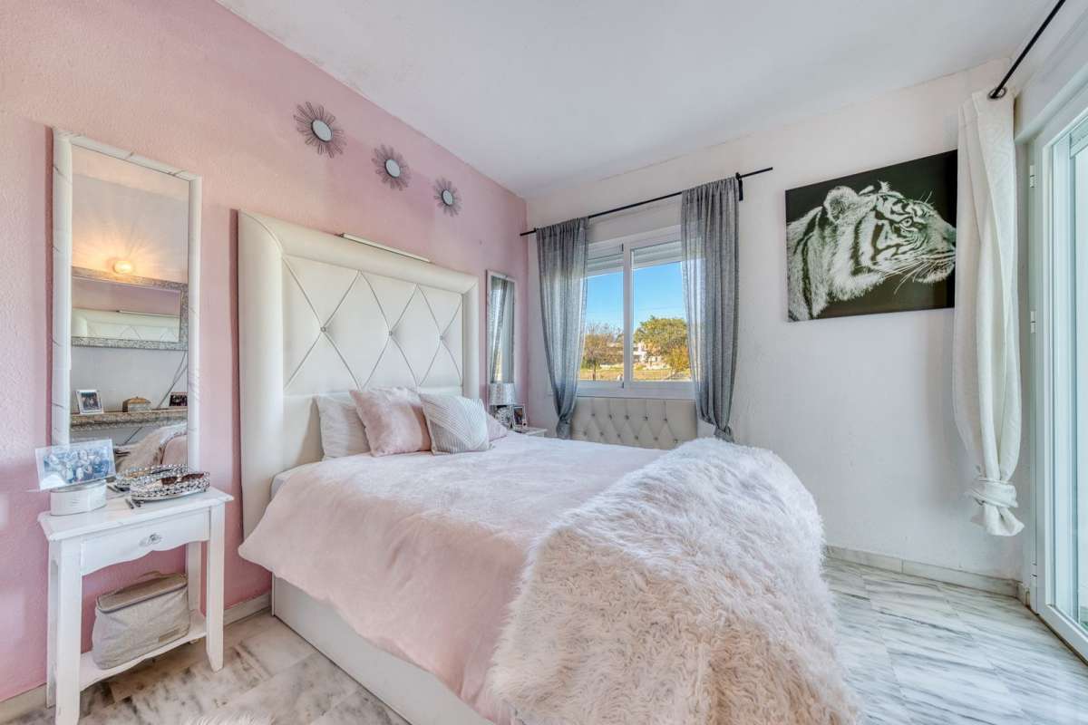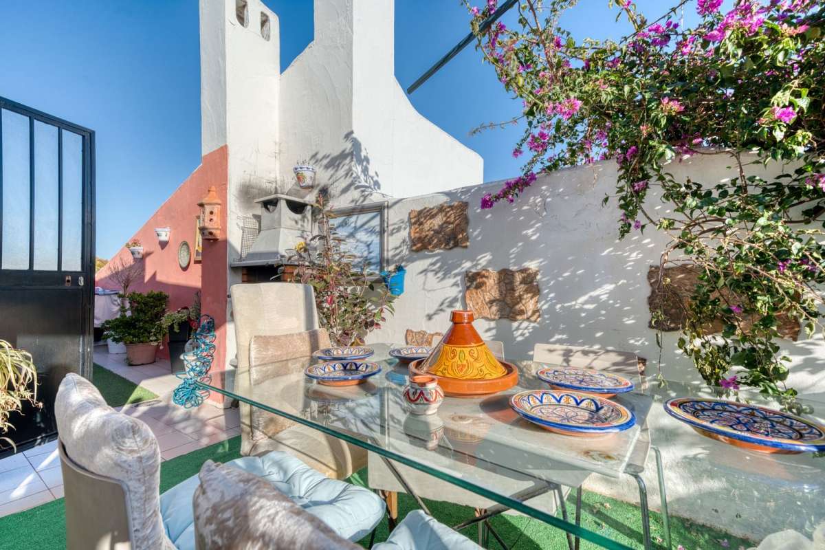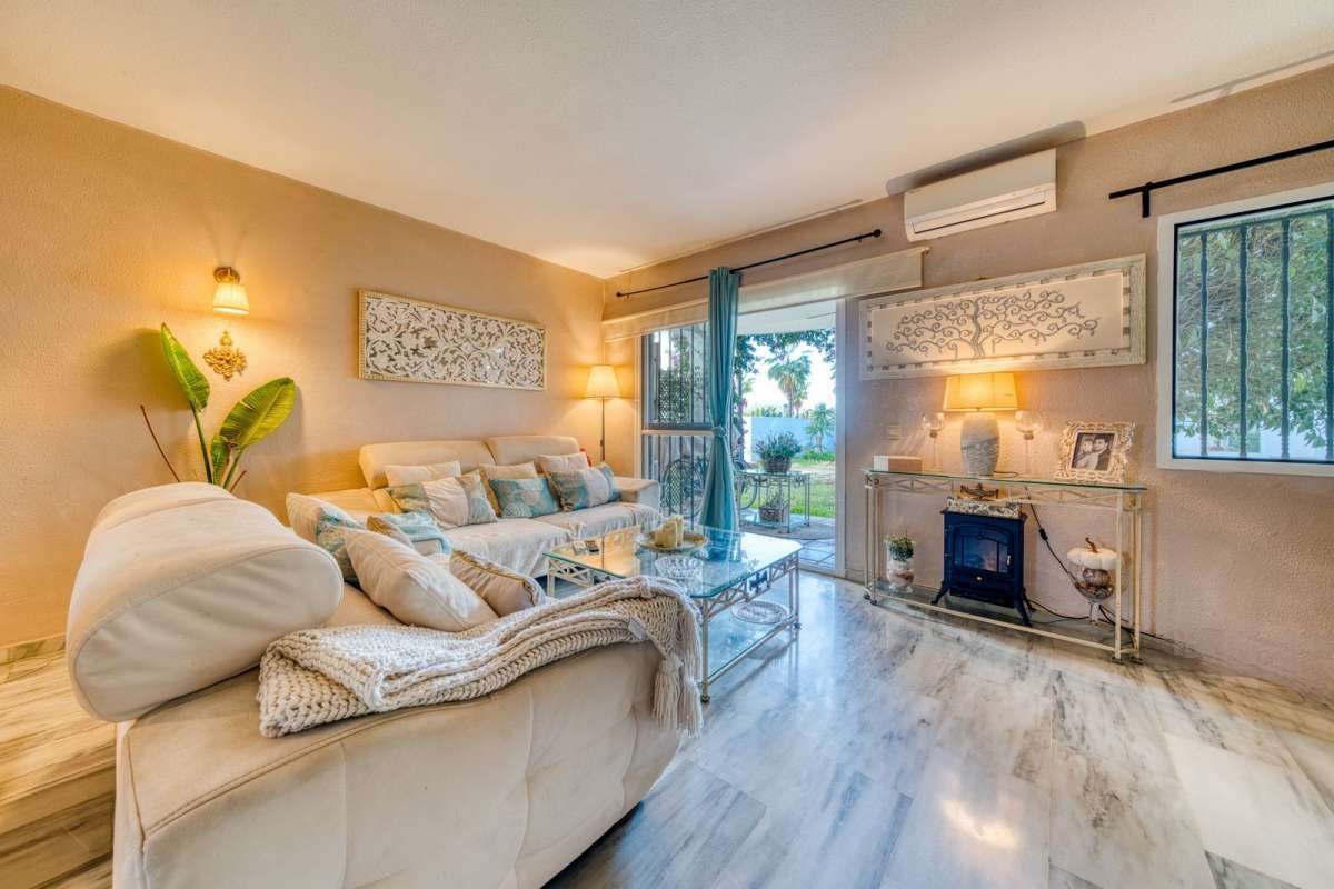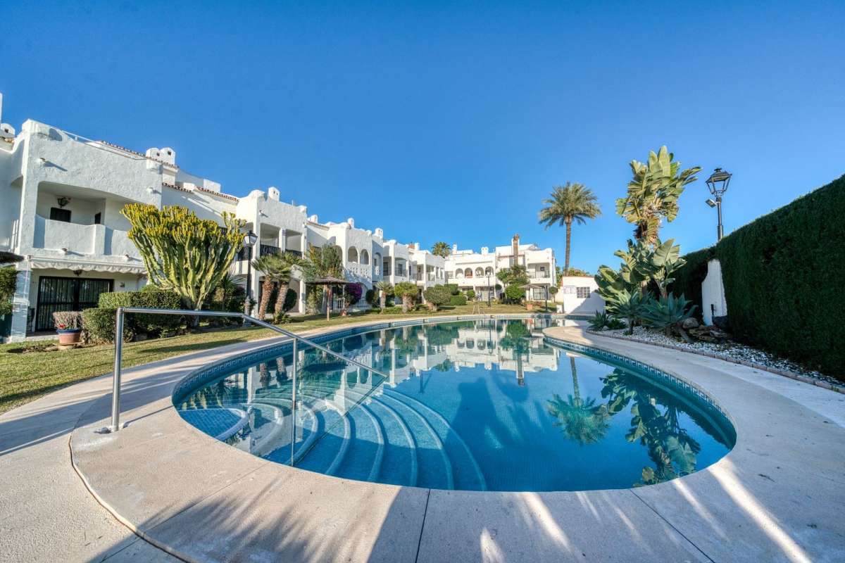 Great value three bedroom end of terrace townhouse located within a private gated community on Estepona's New Golden Mile. The property is just 3 minutes walk from all general amenities, and 17 minutes walk (1.3km) from one of the best beaches in Estepona. Situated in the desirable area of Bel Air, property offers three bedrooms, two bathrooms and a guest WC, and is split over three levels including a very private roof top terrace. The development features beautifully kept communal gardens and two swimming pools and is ideal for full time living or a rental investment. The south-facing orientation ensures plenty of natural light, while the location provides easy access to local amenities, golf courses, and the beach - all within walking distance. The property has airconditioning throughout, an open fireplace in the lounge, marble flooring throughout, and double glazed windows. A must view investment opportunity in a great location!