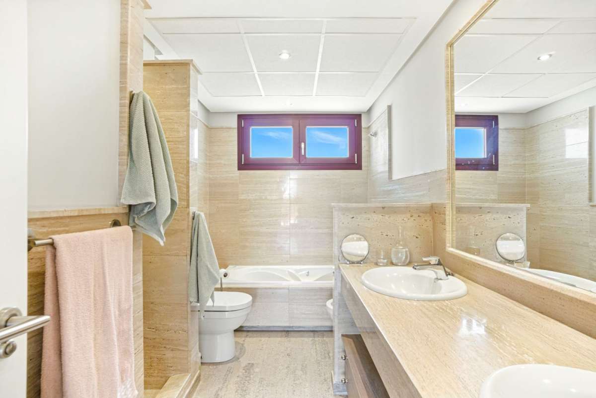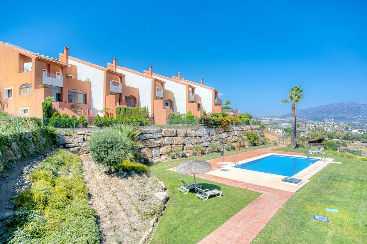 Beautiful townhouse in the prestigious Los Jaralillos community, located in the sought-after El Paraíso area of Benahavís. Within walking distance to the beach, golf courses, shops, restaurants, cafés, and international schools. Spread over four floors, this charming home features private gardens and offers stunning sea views from several terraces. The main floor comprises a fully equipped kitchen, spacious living-dining area, laundry area, guest toilet, and a large terrace with sea views that provides direct access to the private garden. The first floor offers two bedrooms, both with access to a terrace with sea views. The master bedroom is en suite, and this floor also includes an additional bathroom and a small sitting area. The upper floor is dedicated to a solarium with a generous terrace, perfect for sunbathing or enjoying the views. The basement houses the machine room and a utility room. The property offers the perfect combination of comfort and location, within a gated community, with beautifully maintained gardens and a large communal swimming pool. Additional features include wooden flooring, air conditioning, and a parking space. This townhouse combines comfort, privacy, and a privileged location.