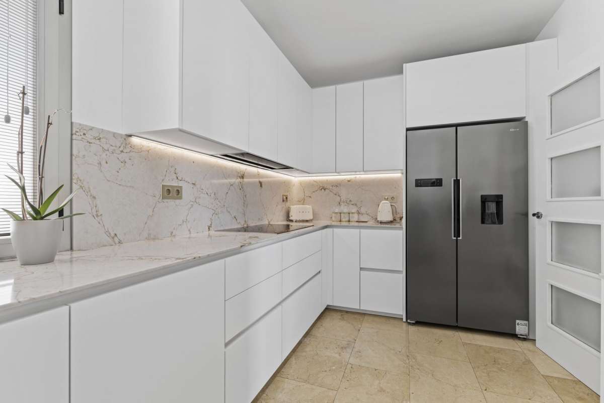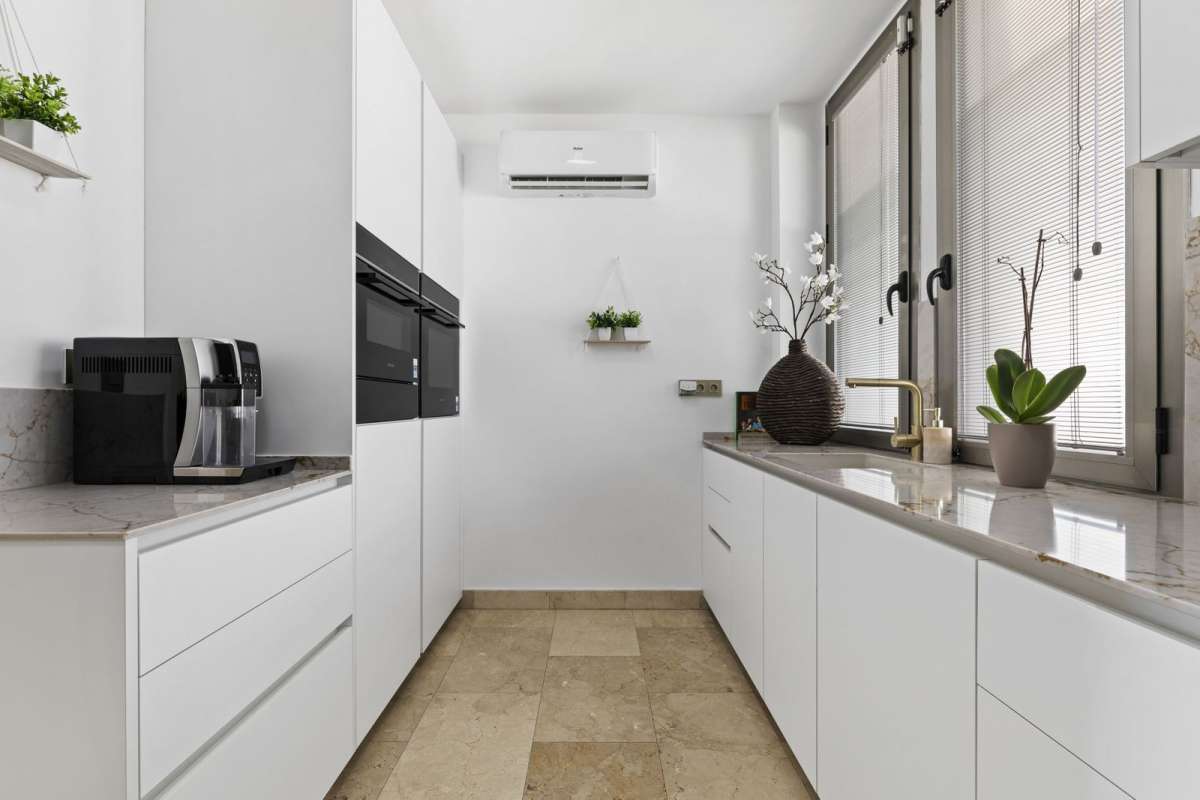 The ground floor features a bright and spacious living/dining area with marble floors, opening to terraces that overlook the private pool and garden. A modern newly fitted kitchen, adds both style and practicality. The master suite includes an ensuite bathroom and a private terrace with breathtaking sea views, while additional bedrooms are well-proportioned, one with its own terrace overlooking the pool. The large basement with fireplace provides a versatile space for entertaining, office, or leisure use. Residents also enjoy access to communal gardens and swimming pool, all within a secure and well-maintained community.