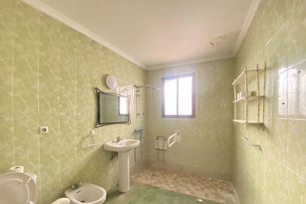 A two-story building in need of restoration, featuring several bedrooms and two small, independent apartments with several terraces and patios.
