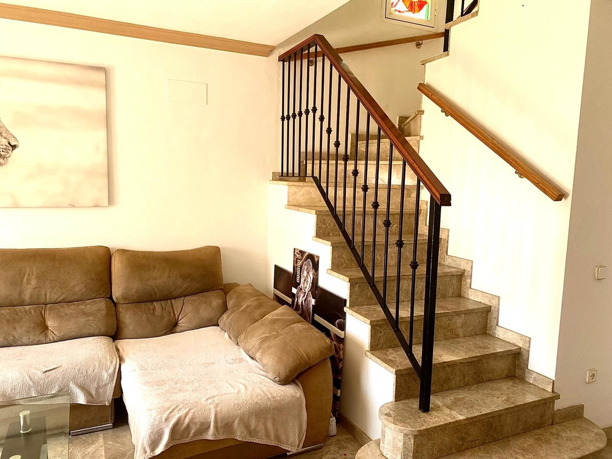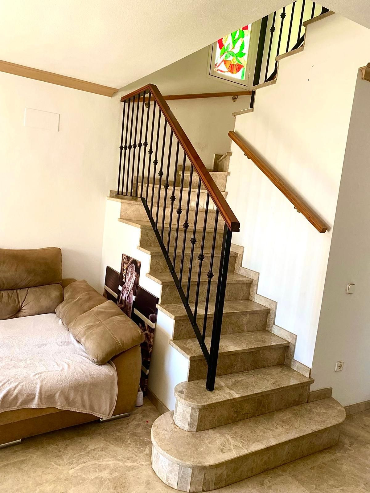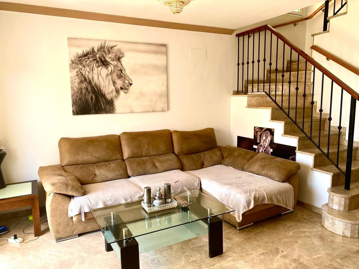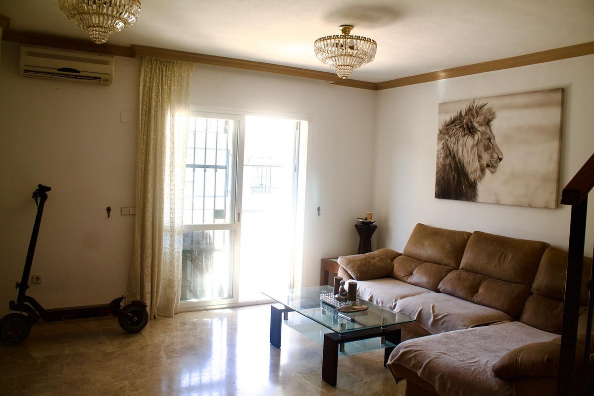 Discover your new home in Huerta del Prado-La Montua, Marbella! This impressive semi-detached villa, built in 2001, offers a spacious and bright 210 m² spread over four floors. With four bedrooms and three bathrooms, this property is ideal for families seeking comfort and style. The ground floor features a modern kitchen connected to the garage, a cozy living room, and a charming front porch that leads to a rear garden with a barbecue area, perfect for enjoying time outdoors. The first floor houses three cozy bedrooms, two of which have balconies offering views, one facing the outside and the other overlooking the garden. In addition, one of the bathrooms is en suite, providing privacy and comfort. On the second floor, a huge loft awaits you, which can be transformed into the space you've always dreamed of, with the possibility of adding another en suite bathroom. It features a private terrace with sea views that will make every sunrise special. The villa also stands out for its large basement, which houses a garage with capacity for up to four vehicles and a large storage room. The property is in perfect condition, equipped with central air conditioning with two heat and cold pumps to separate the ground and first floors, and built-in wardrobes in all bedrooms. It features marble floors throughout. In addition, the complex has two swimming pools (one for children and one for adults) and large green areas, creating an ideal environment to enjoy the Costa del Sol. Don't miss the opportunity to live in one of the best residential areas in Marbella. This villa is the perfect option to enjoy the Mediterranean lifestyle! It is possible to purchase it furnished, if you prefer. Come visit it and fall in love with your new home!