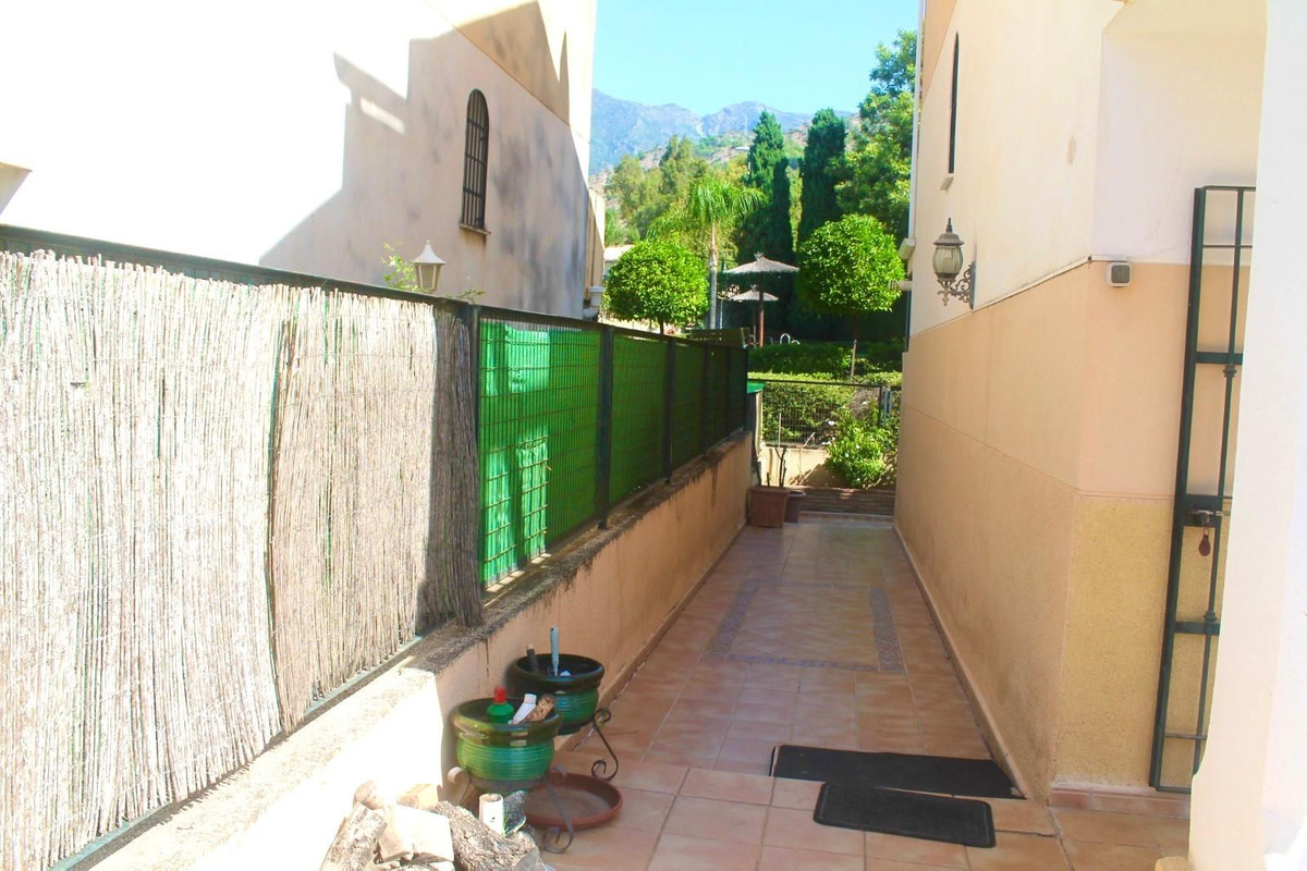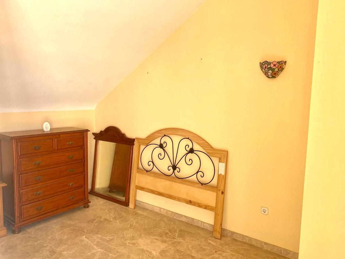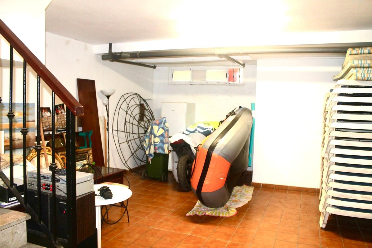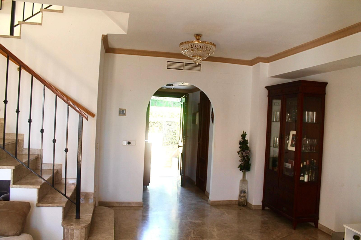 Discover your new home in Huerta del Prado-La Montua, Marbella! This impressive semi-detached villa, built in 2001, offers a spacious and bright 210 m² spread over four floors. With four bedrooms and three bathrooms, this property is ideal for families seeking comfort and style. The ground floor features a modern kitchen connected to the garage, a cozy living room, and a charming front porch that leads to a rear garden with a barbecue area, perfect for enjoying time outdoors. The first floor houses three cozy bedrooms, two of which have balconies offering views, one facing the outside and the other overlooking the garden. In addition, one of the bathrooms is en suite, providing privacy and comfort. On the second floor, a huge loft awaits you, which can be transformed into the space you've always dreamed of, with the possibility of adding another en suite bathroom. It features a private terrace with sea views that will make every sunrise special. The villa also stands out for its large basement, which houses a garage with capacity for up to four vehicles and a large storage room. The property is in perfect condition, equipped with central air conditioning with two heat and cold pumps to separate the ground and first floors, and built-in wardrobes in all bedrooms. It features marble floors throughout. In addition, the complex has two swimming pools (one for children and one for adults) and large green areas, creating an ideal environment to enjoy the Costa del Sol. Don't miss the opportunity to live in one of the best residential areas in Marbella. This villa is the perfect option to enjoy the Mediterranean lifestyle! It is possible to purchase it furnished, if you prefer. Come visit it and fall in love with your new home!