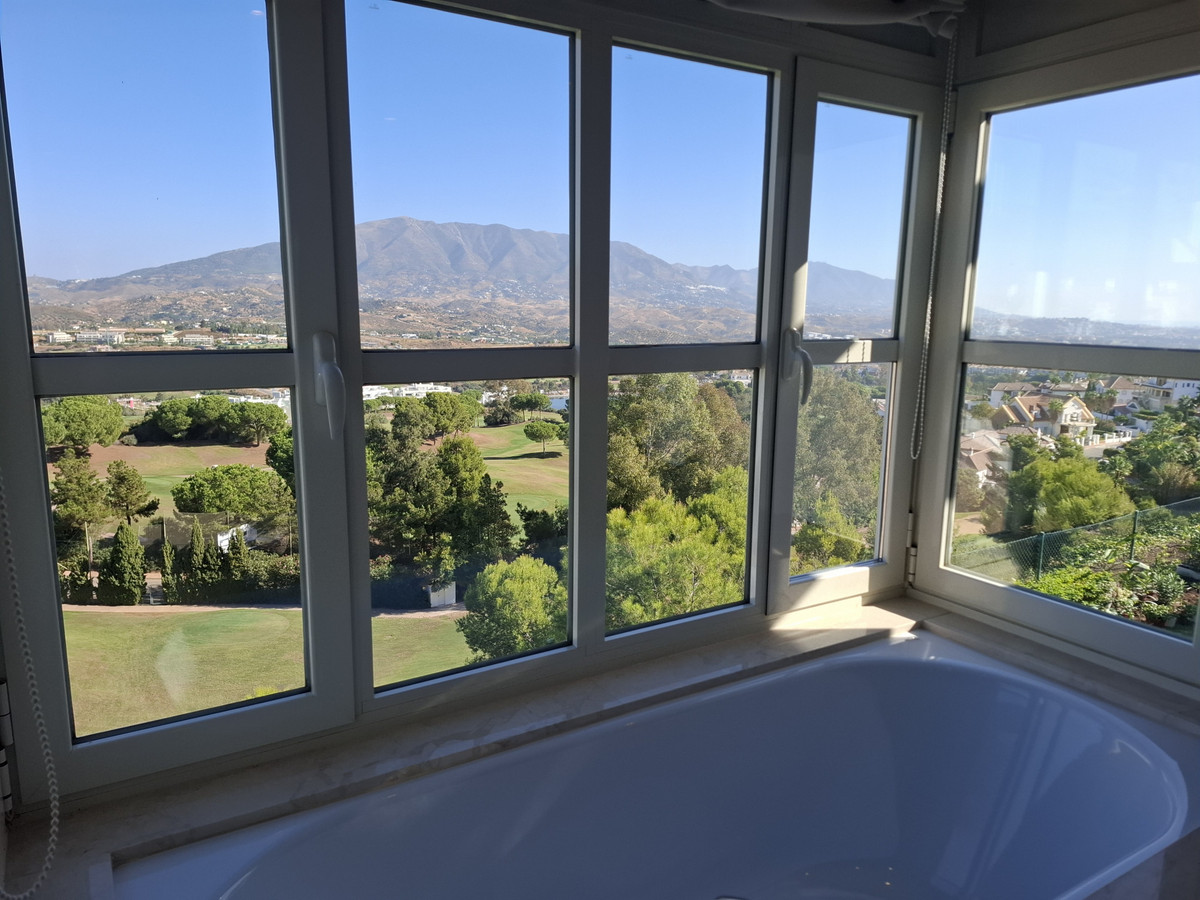 This ample 3 bedroom townhouse is situated frontline golf, and offers open and spectacular views of the golf course, the mountains surrounding the valley, and with the touch of the Mediterranean Sea on the horizon. This property combines elegance, spaciousness, and a privileged location in one of the most desirable Golf enclaves on the Costa del Sol. Ideal as a permanent residence, vacation home, or real estate investment. Has a unique location as it is a corner property with a great layout in 2 floors and a large garden to enjoy all day all year round. With high quality integrated design features throughout. Includes private garage with direct access to the house • Ready to move in. • Spacious living room with fireplace and two large windows that open into a covered terrace and a corner garden. • Ample and fully equipped kitchen with access to the patio-laundry room, all electrical appliances included. With option to become open plan concept if desired. • 3 large bedrooms with fitted wardrobes and access to different terraces. Master bedroom with dressing room and bathroom en suite. • 3 full bathrooms, with top quality marble tiles, main bathroom with underfloor heating, huge shower and Jacuzzi with Golf and sea views. • 3 terraces with different orientations, main terrace with possibility to install glass curtains, offering an ideal space to enjoy at any time of day and year. • Hot / cold air conditioning and fireplace • Private garage and storage area • Alarm system, video intercom and electric shutters in all rooms including living room and kitchen • Furniture included Acquire this property and obtain a privilege card with special offers in all the Resort facilities, 3 X 18-hole golf courses, golf academy, tennis, squash, gym, restaurants, Spa and high-quality beauty salon, house club… and much more.