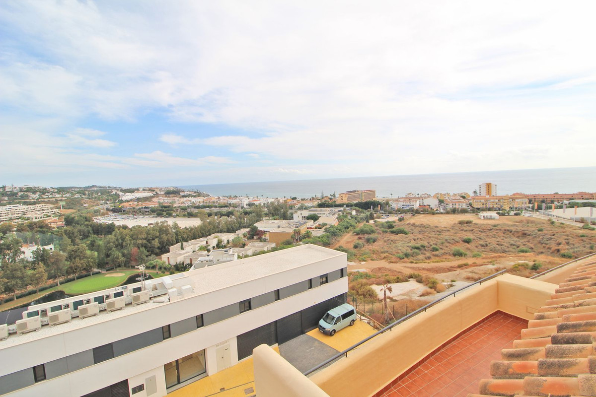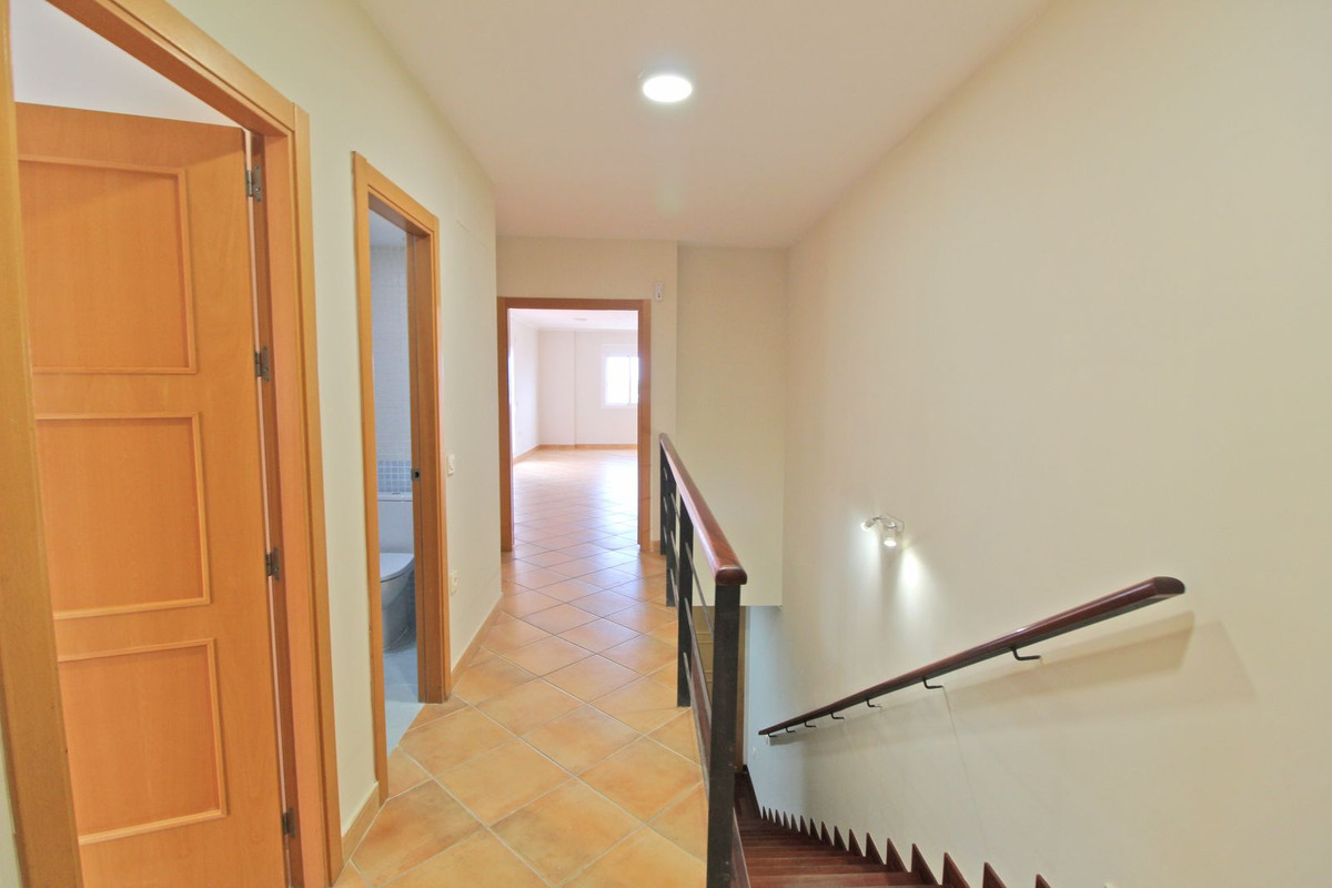 Townhouse in Mijas, a 5-minute drive to all amenities. The house boasts beautiful sea, golf, and mountain views. The property is distributed over two floors plus a solarium. On the entrance floor, there is a large living room with access to the terrace overlooking the sea, kitchen (not fitted), guest bedroom, and a bathroom. On the lower floor, there are three further bedrooms, one of which is en suite, and two others that share a bathroom. Two of the three bedrooms have access to a terrace with stunning sea views. On the upper floor, there is a spacious solarium with panoramic views. There is a parking space right at the entrance to the house. The gated community has swimming pools for adults and children.