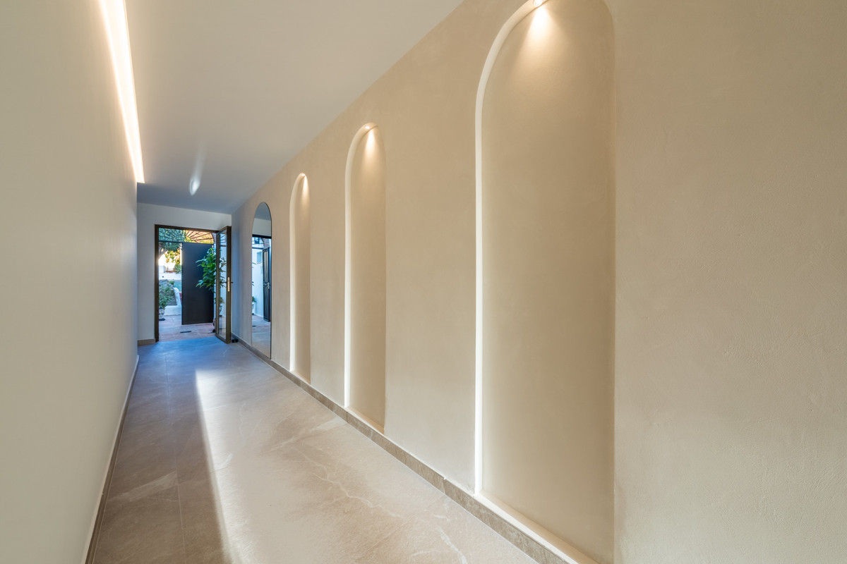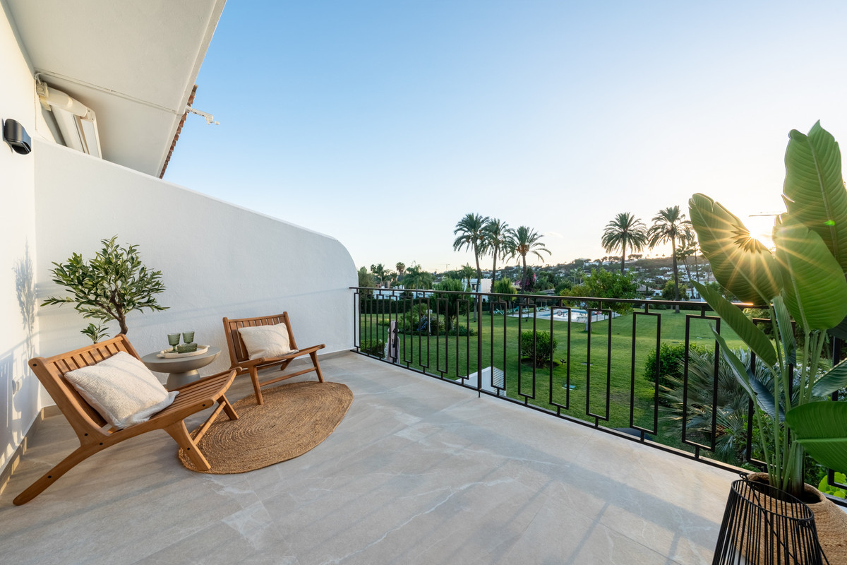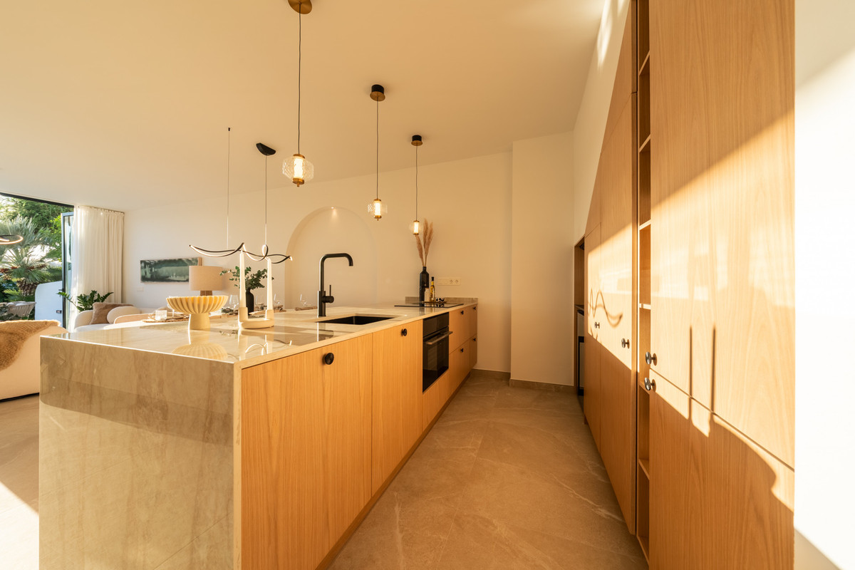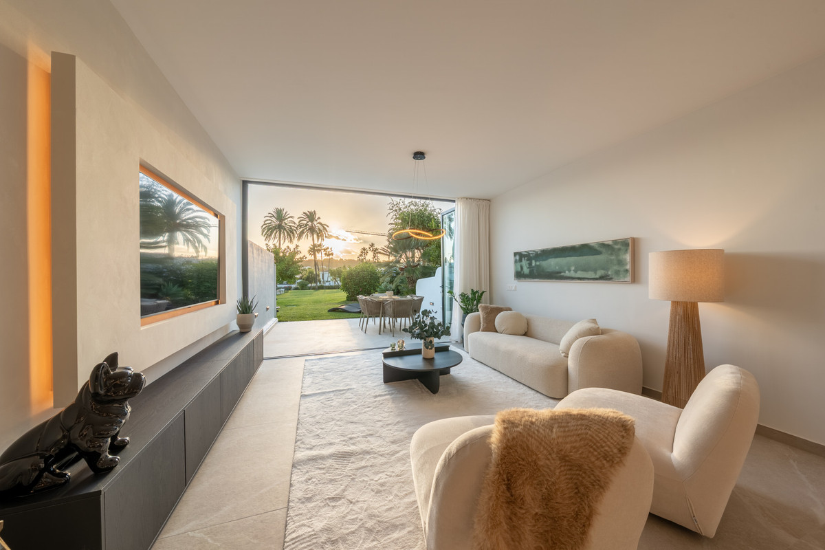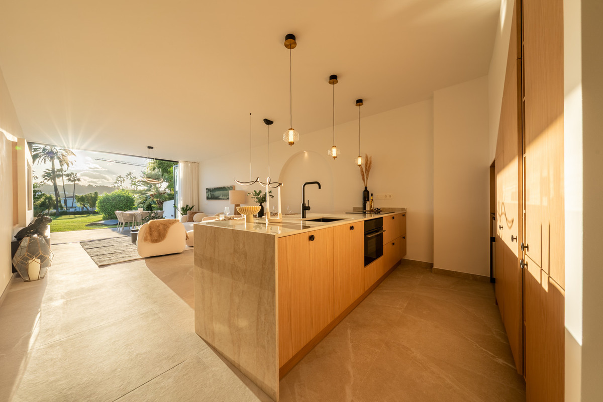 Experience effortless sophistication in this newly renovated 4-bedroom townhouse, nestled within the exclusive gated community of La Rinconada in the heart of Marbella’s Golf Valley. Designed with a modern Mediterranean aesthetic, the home exudes warmth and elegance. The open-plan living space features a bespoke kitchen with natural wood accents and Dekton finishes, flowing seamlessly into the dining and lounge areas. Expansive glass doors open to a private terrace and landscaped garden — perfect for relaxed al-fresco living. Upstairs, the serene master suite and guest bedrooms combine comfort and style, enhanced by refined materials and soft, neutral tones throughout. Set among lush tropical gardens with a beautiful communal pool, this home offers the perfect blend of tranquillity and convenience — moments from world-class golf courses, boutique shopping, and the vibrant life of Puerto Banús. A rare turnkey residence that captures the essence of contemporary Marbella living.