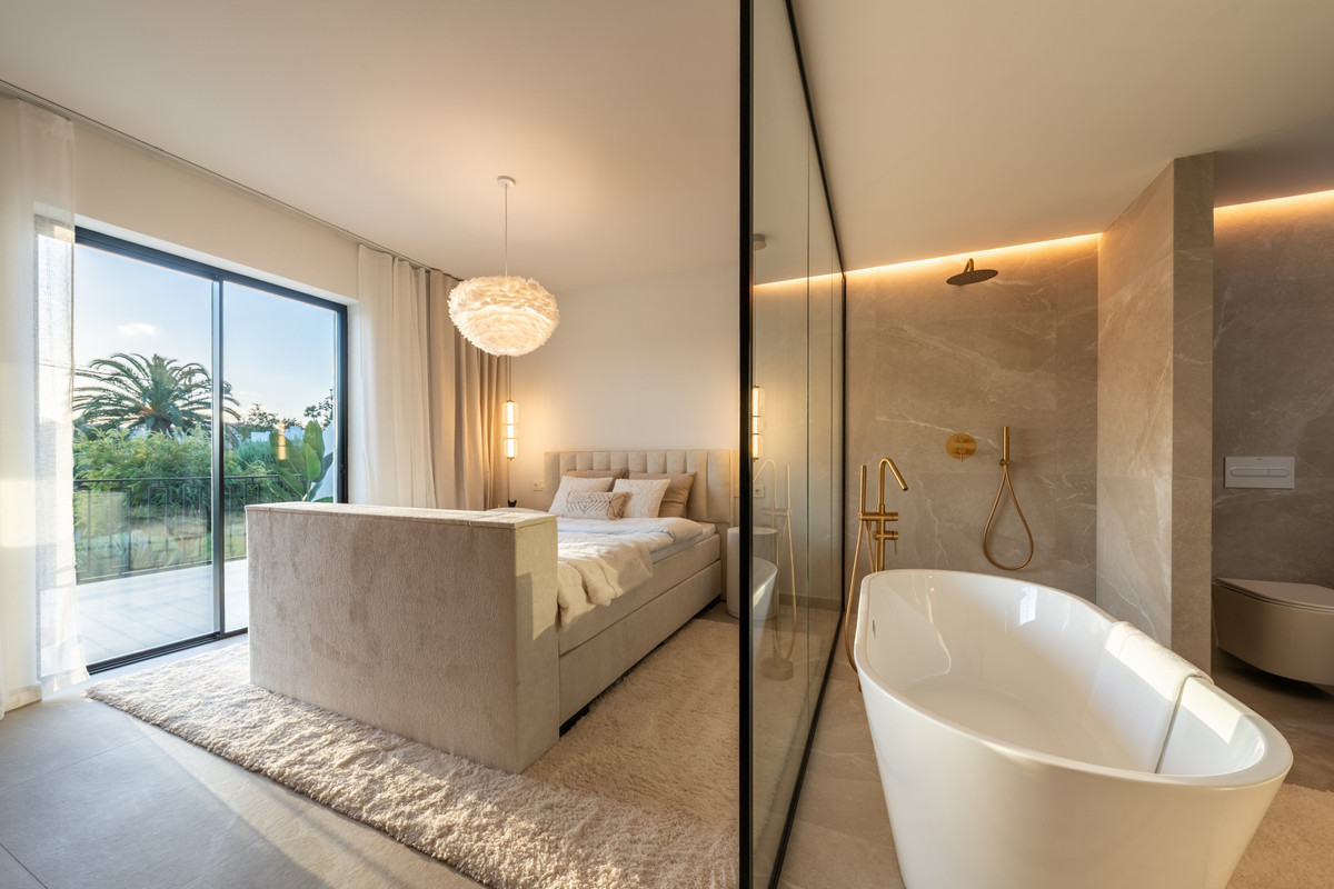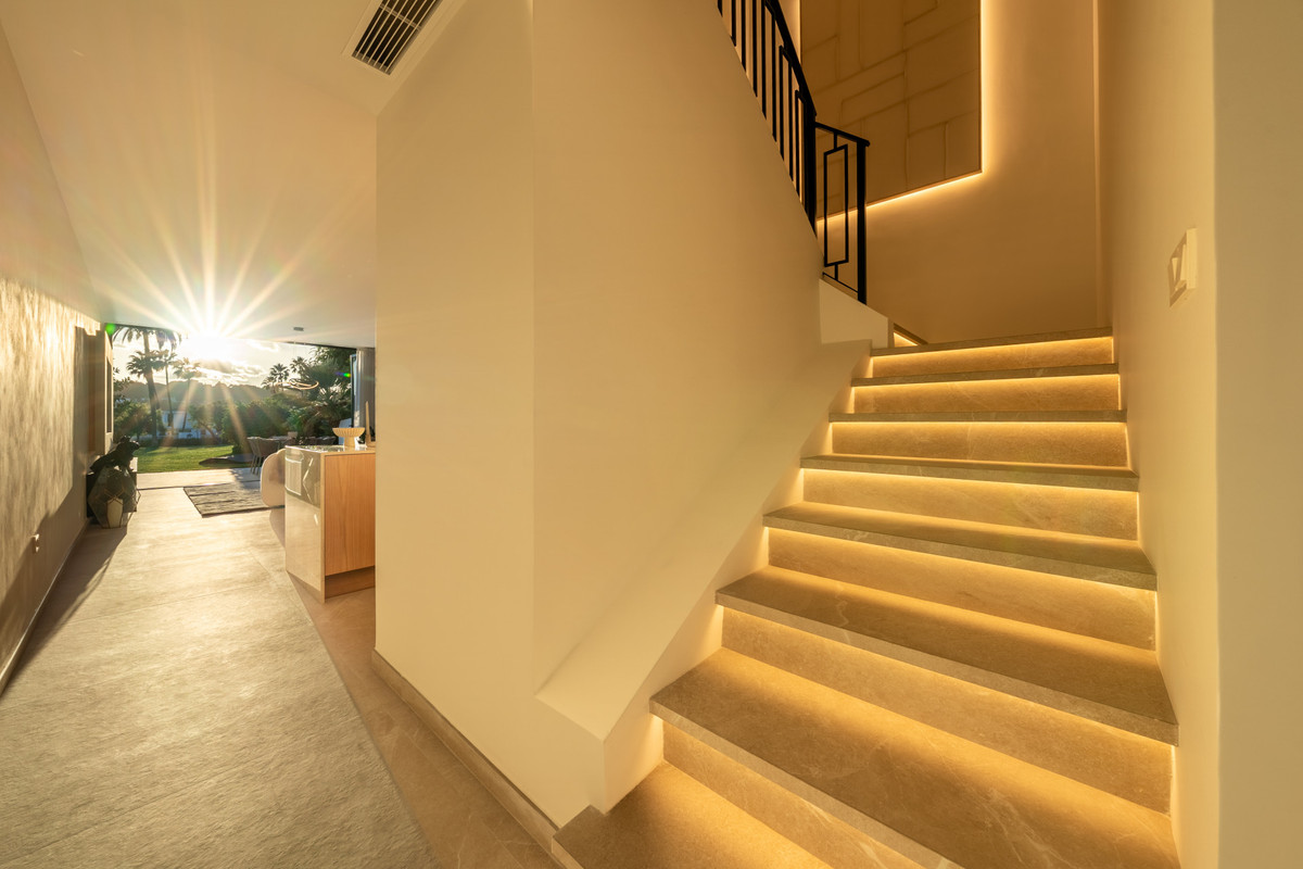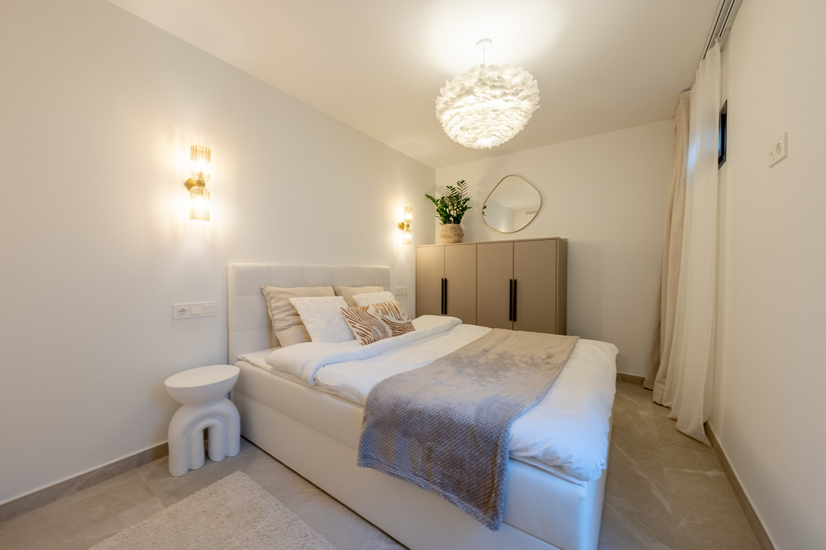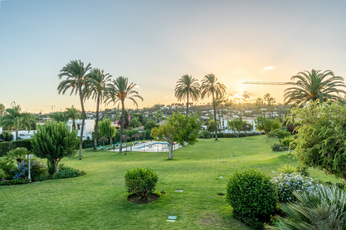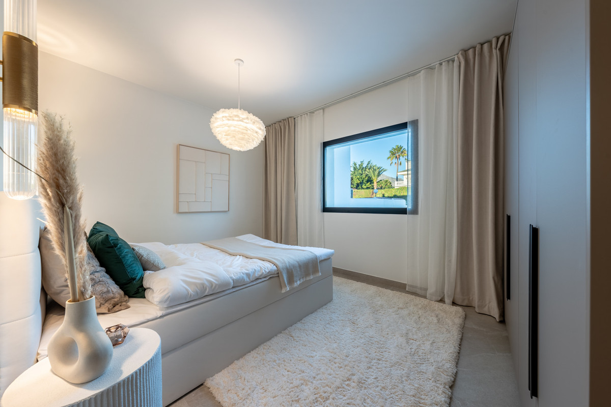Experience effortless sophistication in this newly renovated 4-bedroom townhouse, nestled within the exclusive gated community of La Rinconada in the heart of Marbella’s Golf Valley. Designed with a modern Mediterranean aesthetic, the home exudes warmth and elegance. The open-plan living space features a bespoke kitchen with natural wood accents and Dekton finishes, flowing seamlessly into the dining and lounge areas. Expansive glass doors open to a private terrace and landscaped garden — perfect for relaxed al-fresco living. Upstairs, the serene master suite and guest bedrooms combine comfort and style, enhanced by refined materials and soft, neutral tones throughout. Set among lush tropical gardens with a beautiful communal pool, this home offers the perfect blend of tranquillity and convenience — moments from world-class golf courses, boutique shopping, and the vibrant life of Puerto Banús. A rare turnkey residence that captures the essence of contemporary Marbella living.