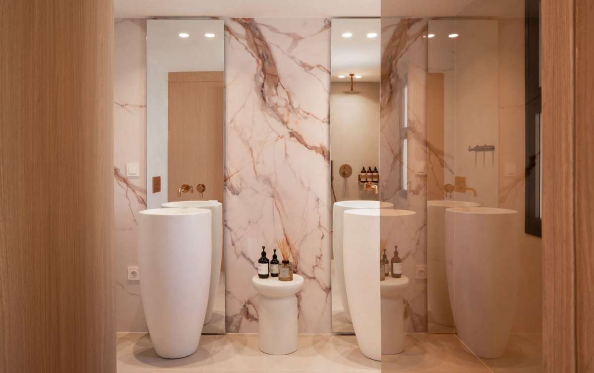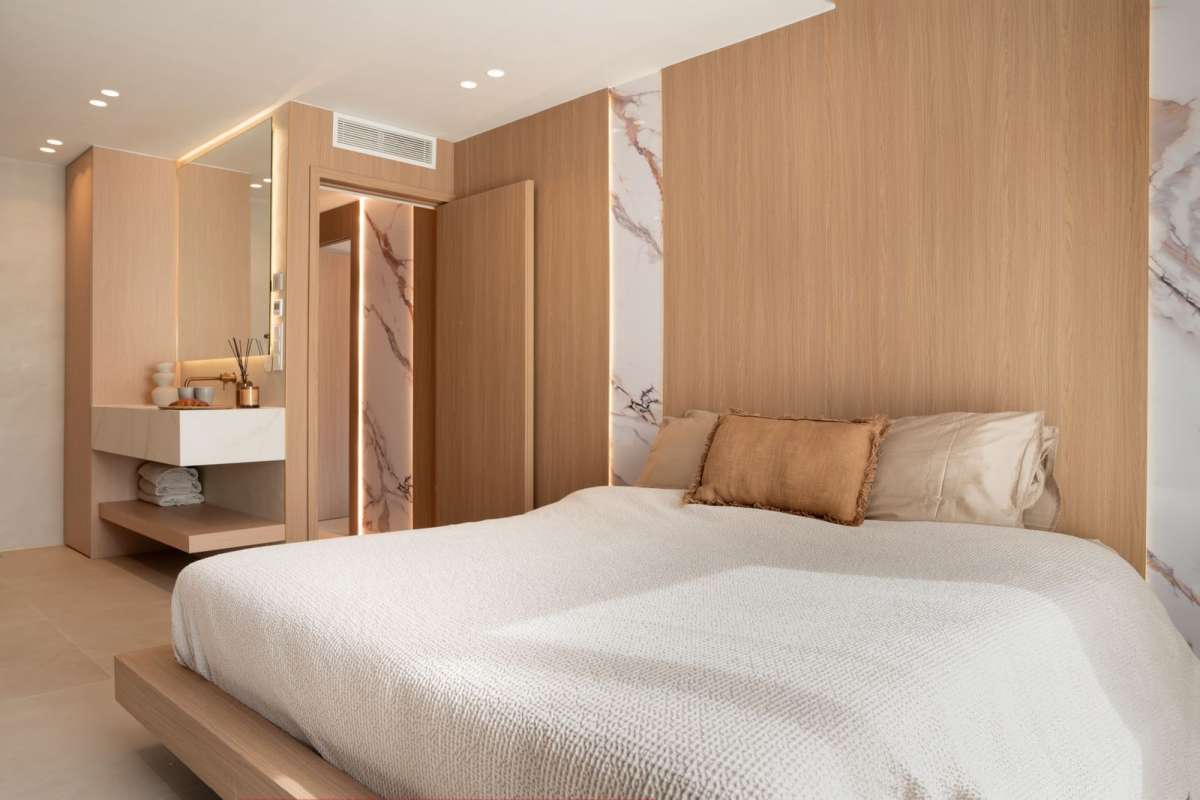 This exceptional home features four bedrooms, one en-suite bathroom, an additional full bathroom, and a guest toilet, offering generous space for family and guests. The renovation is of the highest quality, with exquisite microcement finishes, hidden LED lighting creating a cosy ambiance, and bespoke, custom-made carpentry throughout, giving the home an unmistakable sense of luxury and sophistication.