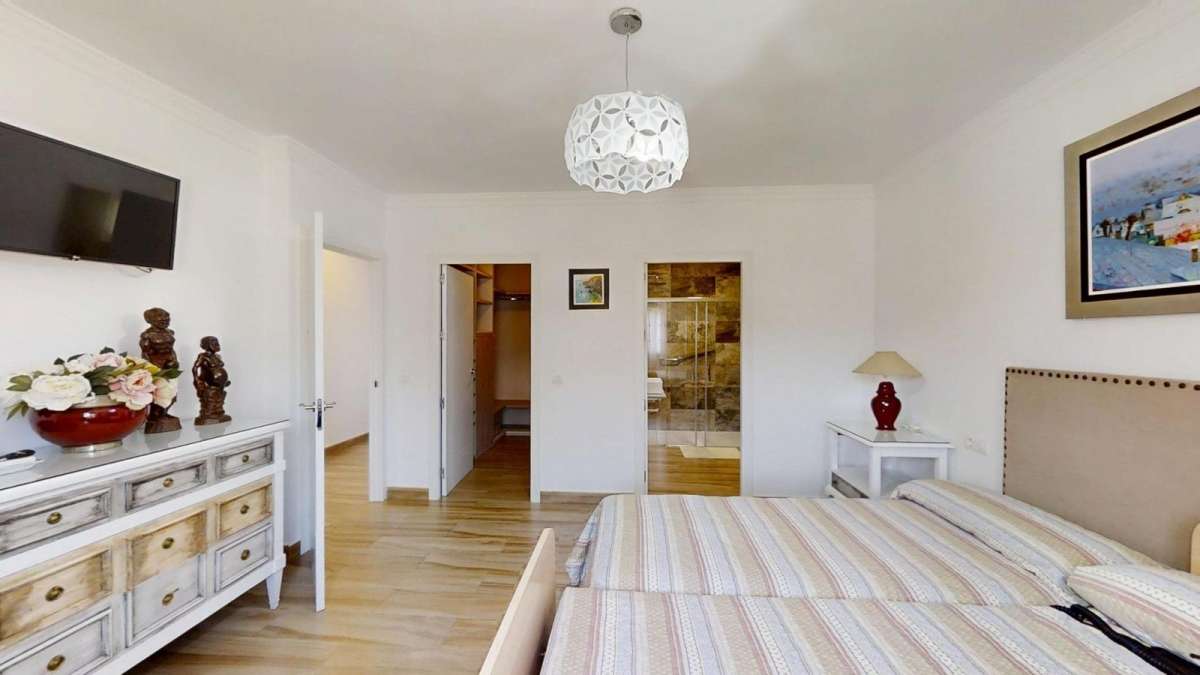 Master bedroom with elegant walk-in wardrobe and en-suite bathroom, creating a high-end private retreat.