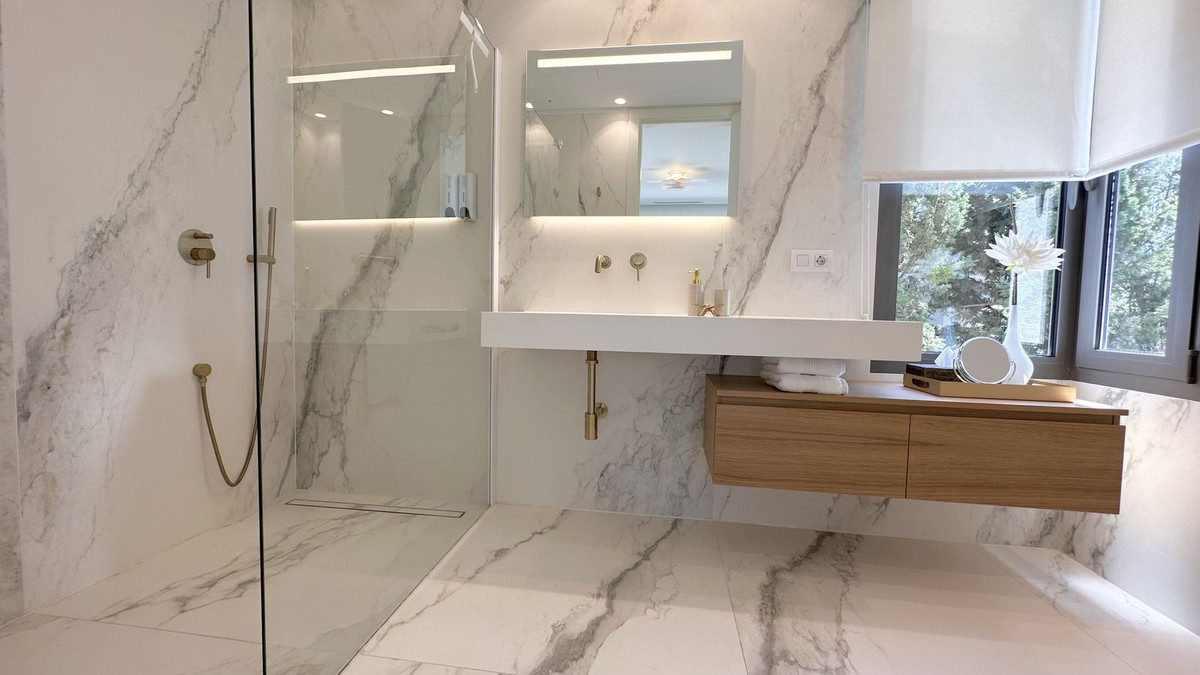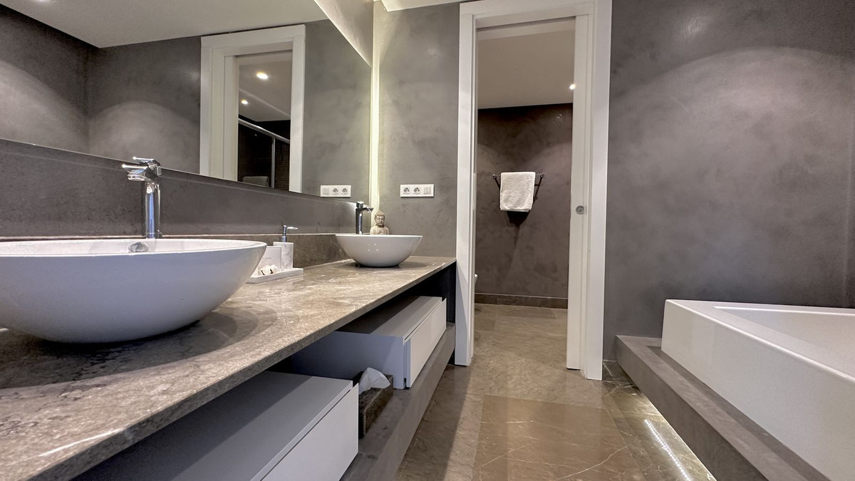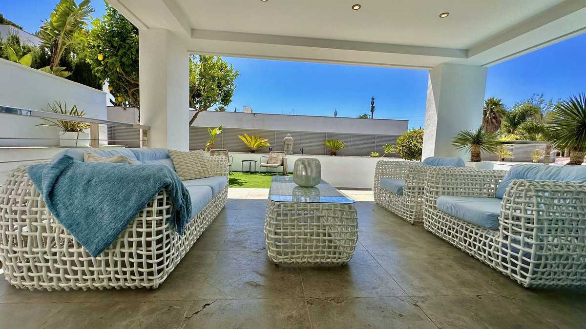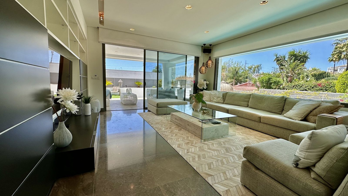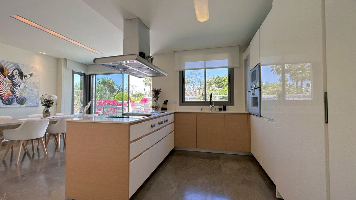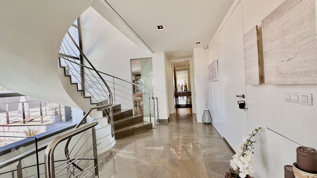Modern Villa with high quality interior designer in Nagueles Golden Mile. This is a new 4 bedroom villa built to the highest standards of quality in the area of Nagueles. 4 double bedrooms, 3 bathrooms. 5 terraces including panoramic roof terrace with a shower and sunbeds. Free Wifi internet throughout the house. Fully air-conditioned and underfloor. heating Samsung sound system and Smart TV with 300+ international channels. Private 13.5m pool, heated, with sunbeds. Gaggenau dining-kitchen with American fridge, Teppanyaki grill and Espresso machine.