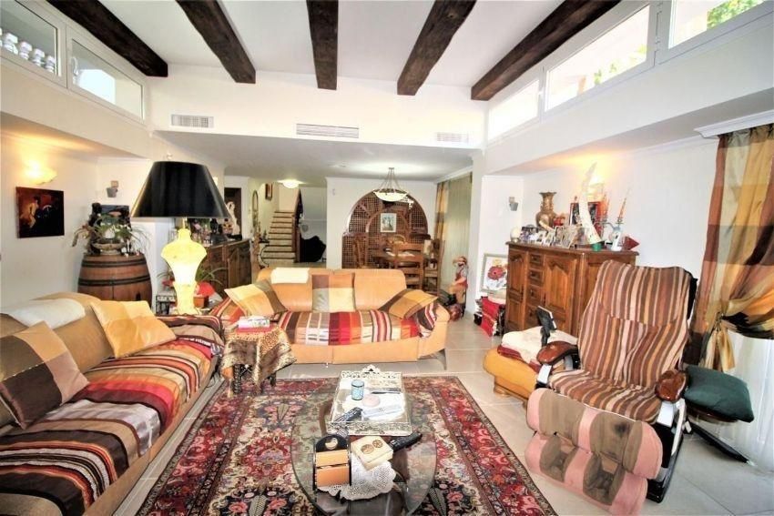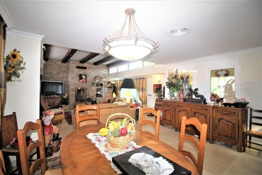 The property sits on a 774 m² plot, surrounded by gardens and featuring a barbecue area with oven, as well as a spectacular private swimming pool.