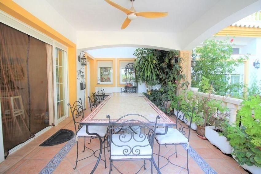 Two large terraces: one covered with a dining area and another open-air terrace.
