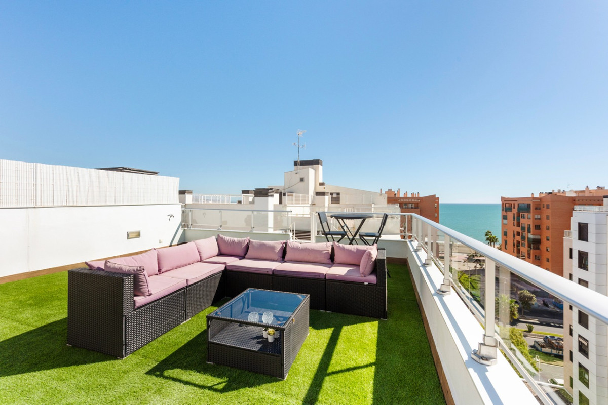 Beschrijving Functies appartement Málaga Stad Nabij strand Nabij winkels Nabij zee Nabij stadscentrum Nabij school Verstedelijking Gevel: Zuid Gevel: Zuidwest Zeezicht Strand Panoramisch Bebouwde kom Uitstekend Keuken: volledig ingericht Elektriciteit Drinkbaar water Centrale verwarming Ondergrondse parking Garage Meer dan één plaats Privaat Gemeenschappelijk zwembad Overdekt terras Ingemaakte kledingkasten Prive terras Solarium Opslagruimte Badkamer in slaapkamer Dubbel glas Lift Bekijk alles Locatie