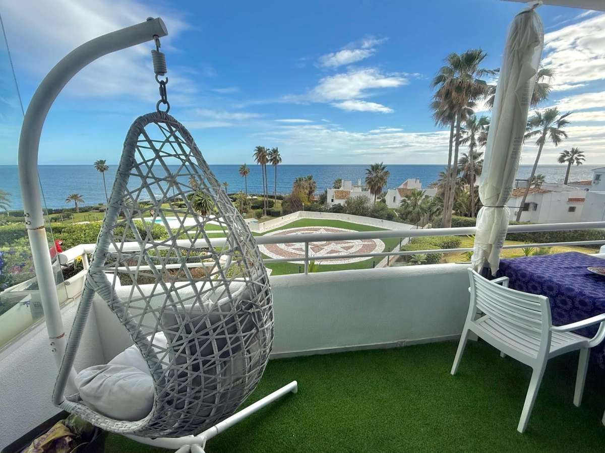 Functies appartement Mijas Costa Aan het strand Aan het strand Nabij strand Nabij zee Nabij school Gevel: Zuid Zeezicht Panoramisch Goed Keuken: gedeeltelijk ingericht Omheind complex Volledig ingericht Airconditioning Privaat Gemeenschappelijke tuin Gemeenschappelijk zwembad Overdekt terras Ingemaakte kledingkasten Prive terras Bekijk alles