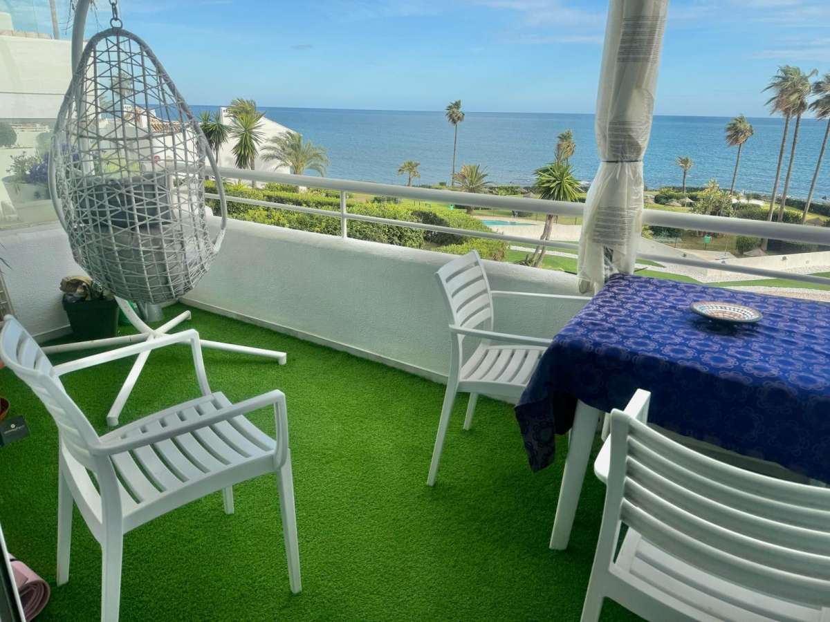 Beschrijving Functies appartement Mijas Costa Aan het strand Aan het strand Nabij strand Nabij zee Nabij school Gevel: Zuid Zeezicht Panoramisch Goed Keuken: gedeeltelijk ingericht Omheind complex Volledig ingericht Airconditioning Privaat Gemeenschappelijke tuin Gemeenschappelijk zwembad Overdekt terras Ingemaakte kledingkasten Prive terras Bekijk alles Locatie