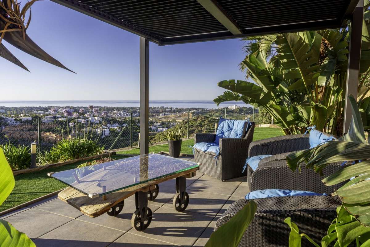 Beschrijving Functies huis Benahavís Investering Wederverkoop Eerstelijn golf Verstedelijking Gevel: Zuid Zeezicht Berg Golf Panoramisch Uitstekend Recentelijk gesaneerd Keuken: volledig ingericht Omheind complex Elektrische zonwering Volledig ingericht Airconditioning Airco warm en koud Airconditioning Ondergrondse parking Privaat Gemeenschappelijke tuin Privé tuin Gemeenschappelijk zwembad Overdekt terras Ingemaakte kledingkasten Prive terras Solarium Gast appartement Opslagruimte Bijkeuken Badkamer in slaapkamer Marmeren vloeren Jacuzzi BBQ Dubbel glas Bekijk alles Locatie