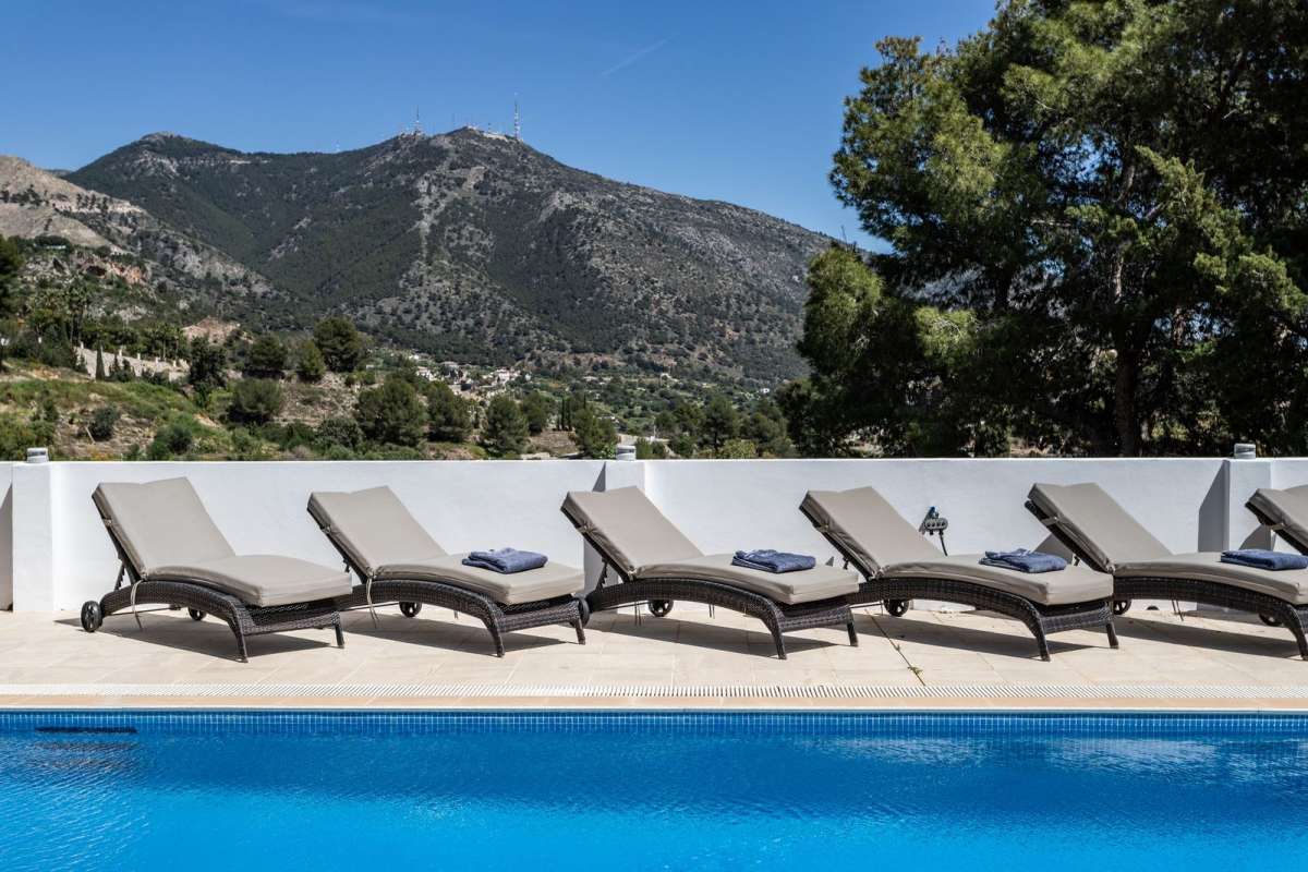 Functies huis Campo Mijas Privé zwembad Investering Wederverkoop Dorp Bergdorp Nabij winkels Nabij bos Gevel: Zuidoost Gevel: Zuid Zeezicht Berg Platteland Panoramisch Bos Uitstekend Keuken: volledig ingericht Elektriciteit Alarmsysteem Volledig ingericht Airconditioning Airco warm en koud Airconditioning Open haard Garage Privaat Privé tuin Prive zwembad Overdekt terras Ingemaakte kledingkasten Nabij transport Prive terras Opslagruimte Bijkeuken Dubbel glas Bekijk alles