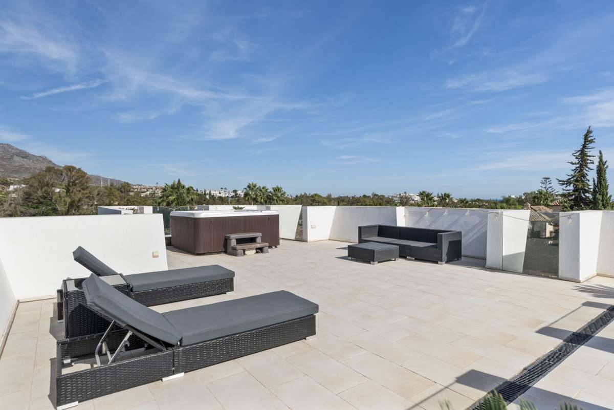 Beschrijving Functies huis Central Nueva Andalucía Privé zwembad Nabij golf Nabij haven Nabij winkels Nabij zee Nabij stadscentrum Nabij school Zeezicht Berg Panoramisch Tuin Zwembad Uitstekend Elektrische zonwering Volledig ingericht Meer dan één plaats Privaat Privé tuin Prive zwembad Overdekt terras Ingemaakte kledingkasten Badkamer in slaapkamer Jacuzzi Bekijk alles Locatie