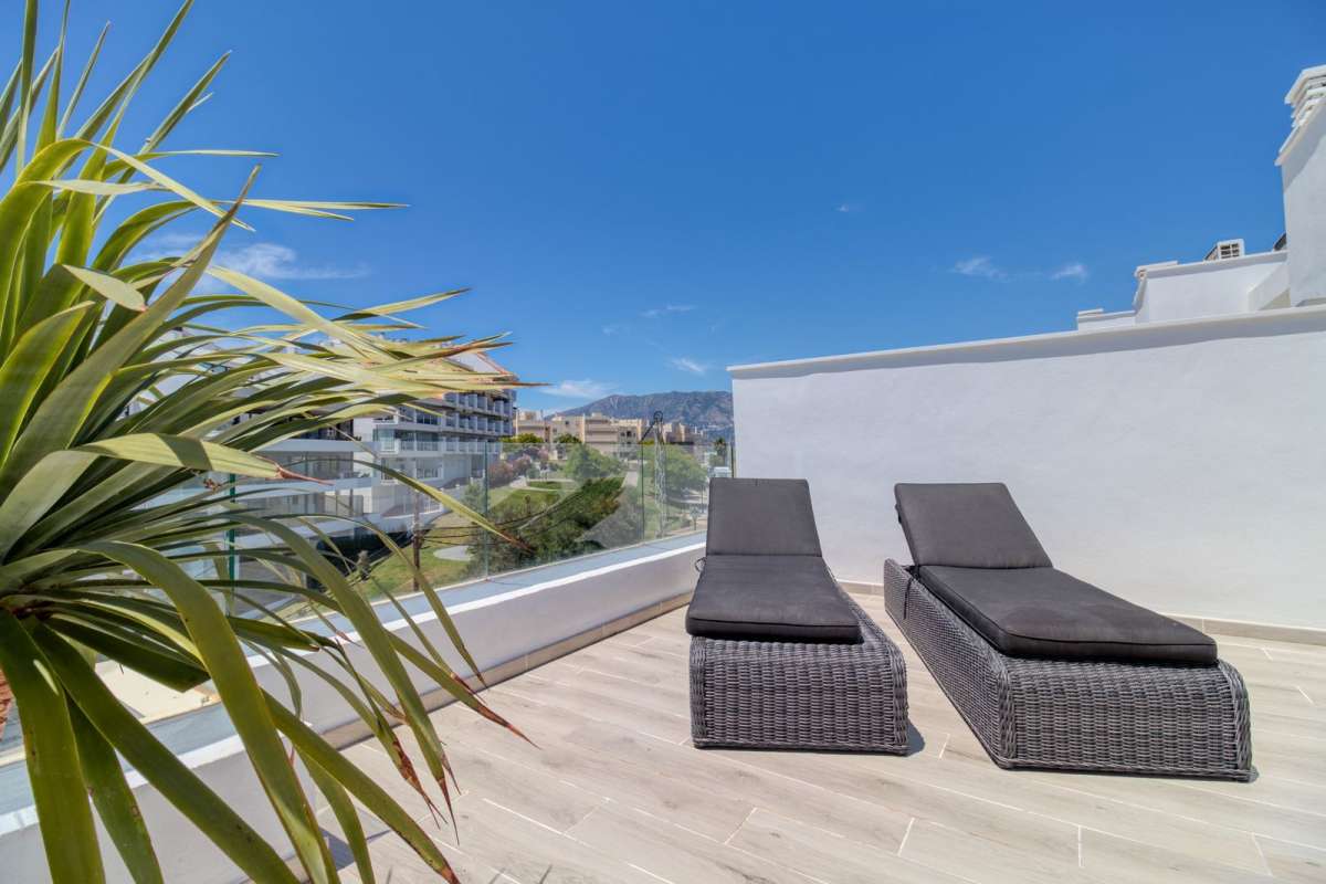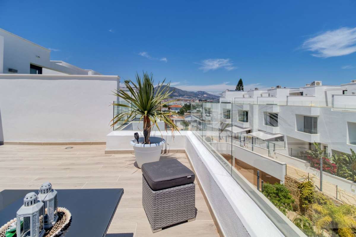 Beschrijving Functies huis Fuengirola Wederverkoop Stad Nabij winkels Nabij zee Gevel: Zuid Zeezicht Berg Uitstekend Keuken: volledig ingericht Omheind complex Airconditioning Airco warm en koud Airconditioning Ondergrondse parking Gemeenschappelijke tuin Privé tuin Gemeenschappelijk zwembad Ingemaakte kledingkasten Nabij transport Prive terras Gymnasium / / Fitnesscentrum Bekijk alles Locatie
