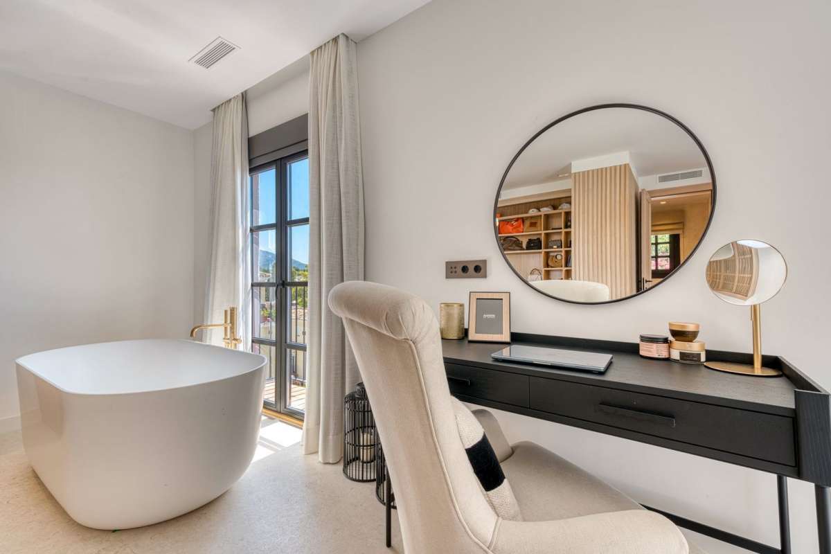 Beschrijving Functies huis Golden Mile Privé zwembad Golf Vakantiewoning Wederverkoop Verstedelijking Gevel: Zuidoost Zeezicht Berg Panoramisch Tuin Uitstekend Recentelijk vernieuwd Keuken: volledig ingericht Elektriciteit Drinkbaar water Omheind complex Airconditioning Airco warm en koud Airconditioning Open haard Privaat Gemeenschappelijke tuin Privé tuin Gemeenschappelijk zwembad Prive zwembad Verwarmd zwembad Overdekt terras Ingemaakte kledingkasten Nabij transport Prive terras Solarium Opslagruimte Bijkeuken Badkamer in slaapkamer Marmeren vloeren Dubbel glas Bekijk alles Locatie