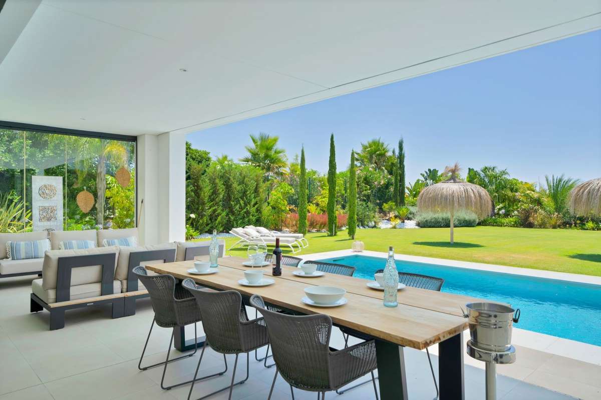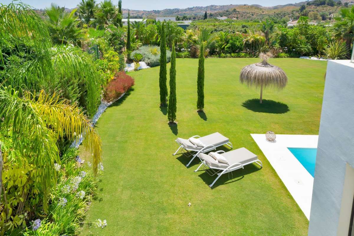 Functies huis Mijas Costa Privé zwembad Golf Wederverkoop Voorstad Nabij golf Nabij bos Verstedelijking Gevel: Zuid Platteland Panoramisch Tuin Zwembad Uitstekend Keuken: volledig ingericht Elektrische zonwering Alarmsysteem Airconditioning Garage Privaat Privé tuin Prive zwembad Overdekt terras Ingemaakte kledingkasten Prive terras Bijkeuken Badkamer in slaapkamer Dubbel glas Bekijk alles