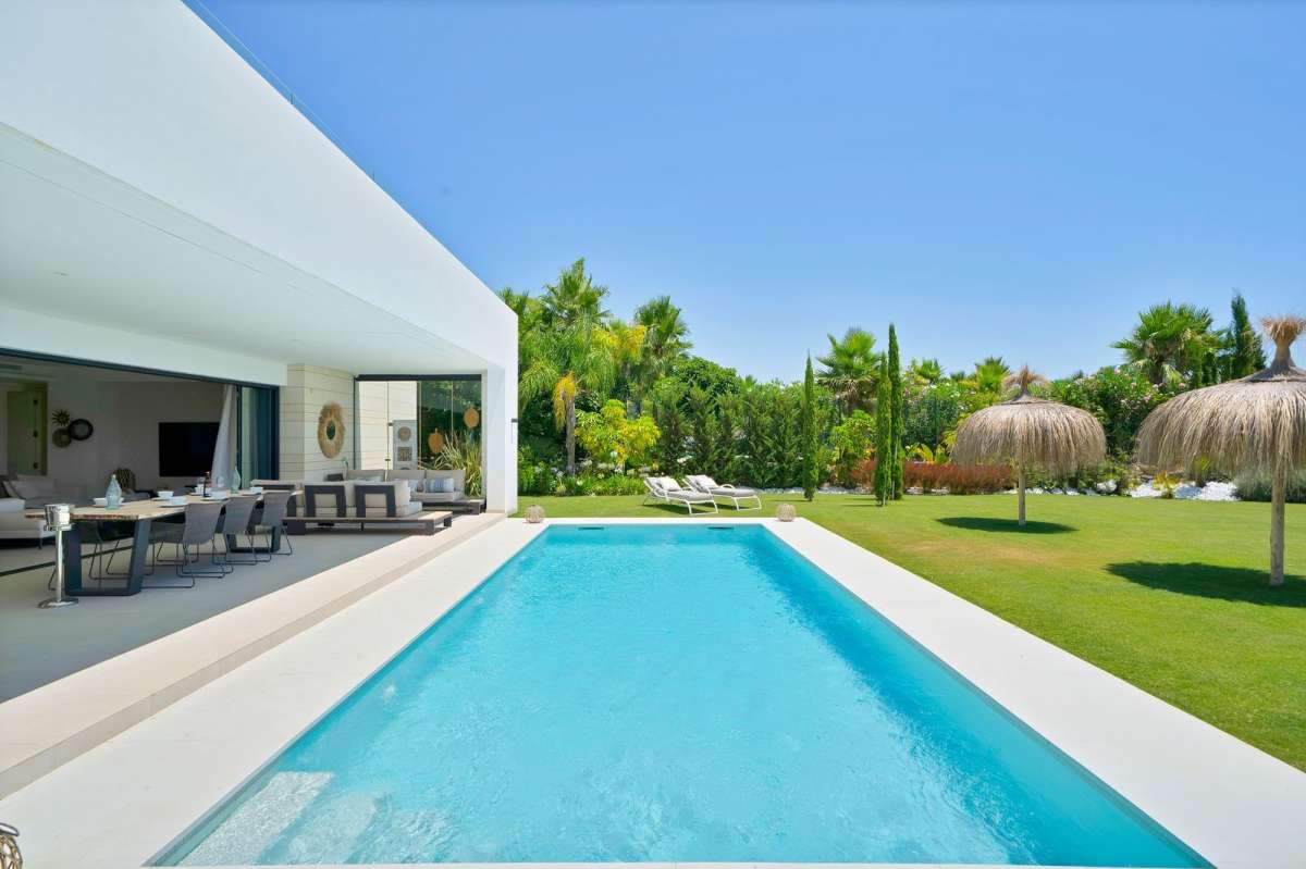 Beschrijving Functies huis Mijas Costa Privé zwembad Golf Wederverkoop Voorstad Nabij golf Nabij bos Verstedelijking Gevel: Zuid Platteland Panoramisch Tuin Zwembad Uitstekend Keuken: volledig ingericht Elektrische zonwering Alarmsysteem Airconditioning Garage Privaat Privé tuin Prive zwembad Overdekt terras Ingemaakte kledingkasten Prive terras Bijkeuken Badkamer in slaapkamer Dubbel glas Bekijk alles Locatie